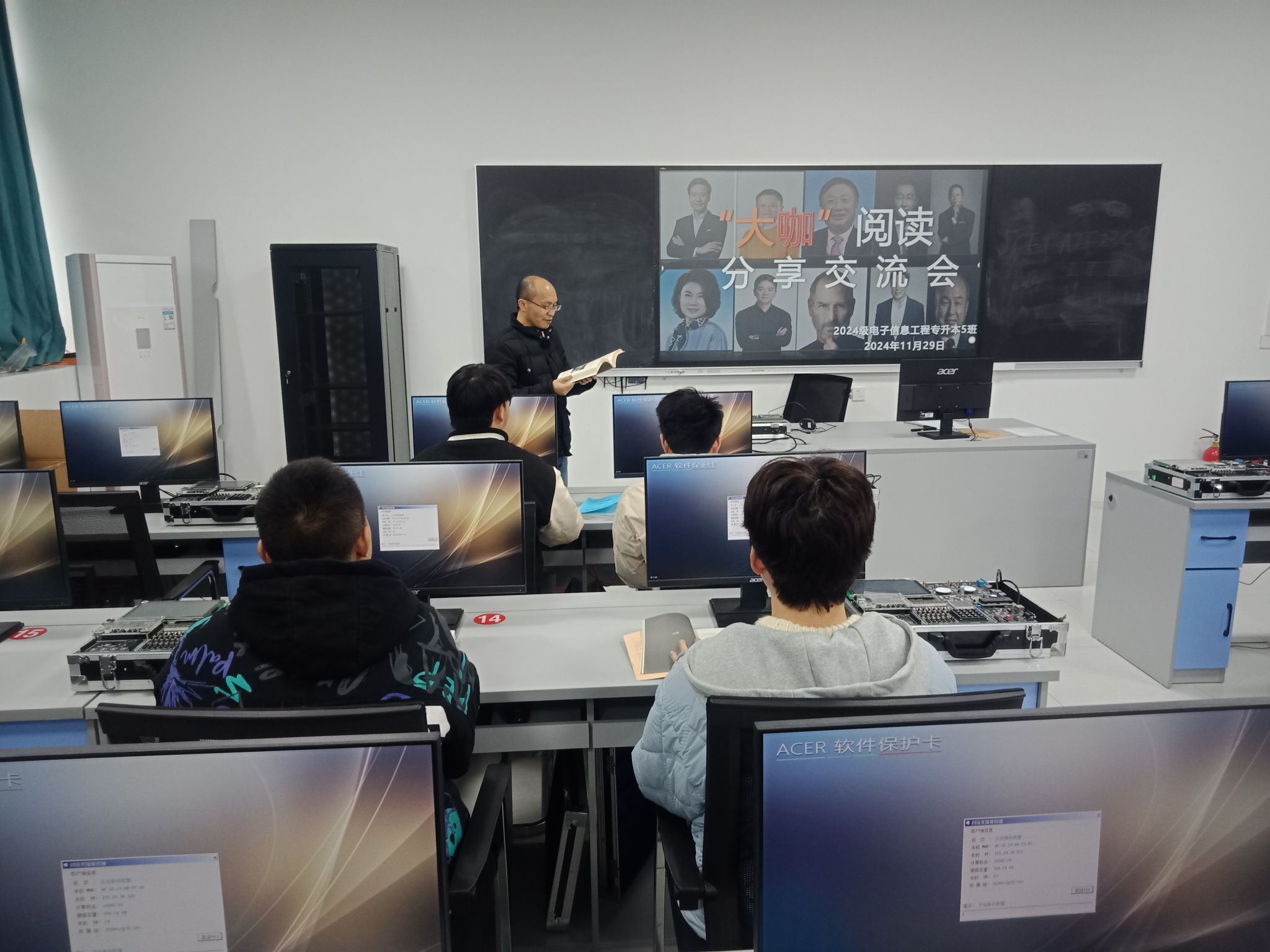 2024年11月29 日,通信与信息工程学院2024级电子信息工程专升本5班在S2202实验室开展了“共沐书香,文润移通”信息产业大咖传记阅读分享活动。此次活动由学业导师王玮老师主持。
