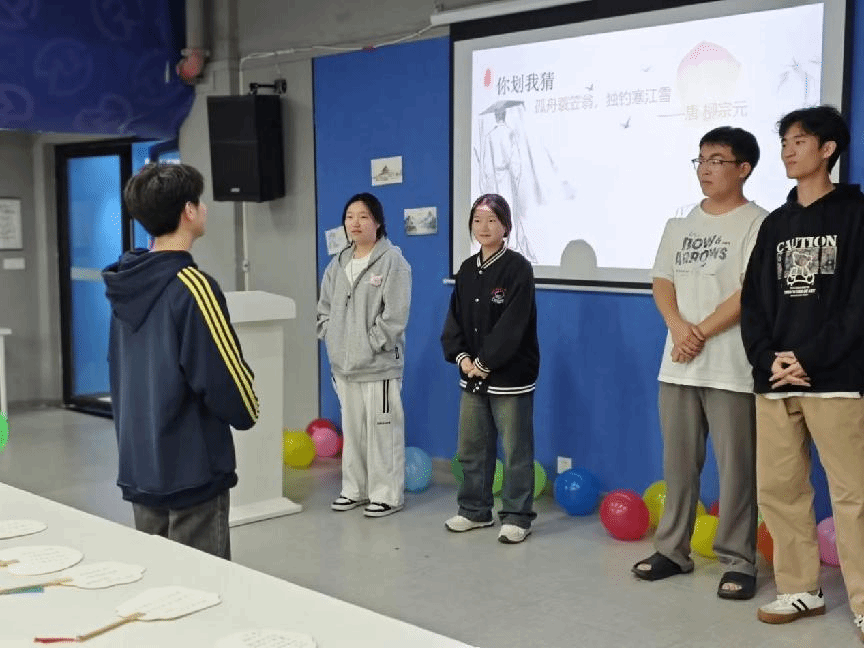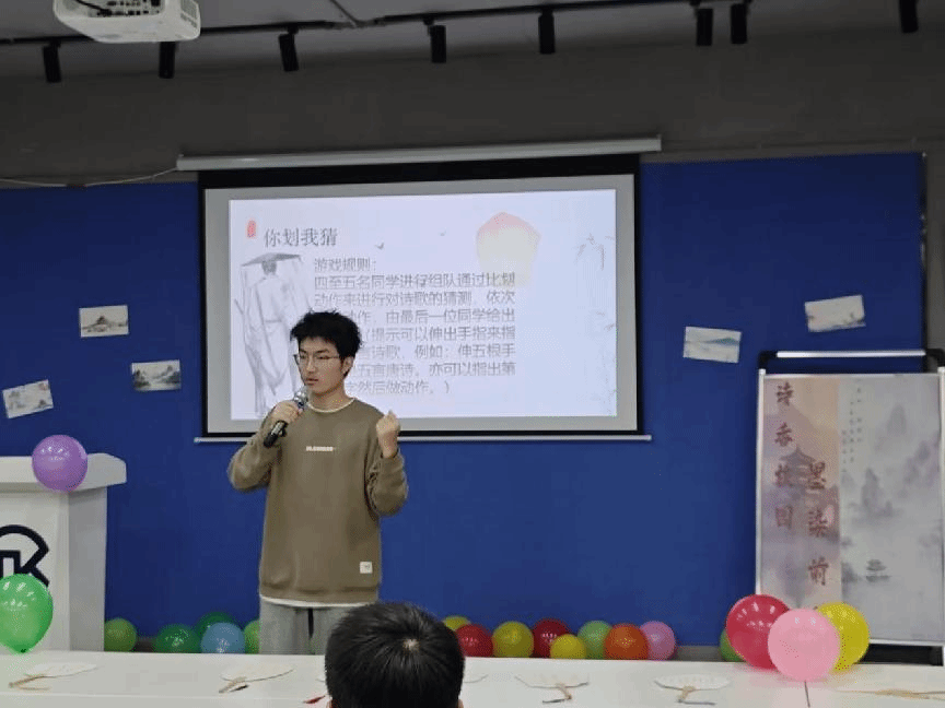 紧接着进行诗词版你划我猜环节。在这个环节中,支部成员四至五人自由组队,通过动作、表情或简短的语言提示来传达诗词内容,比划的成员用各种方式展现诗词意境,让猜测的成员理解队友的提示。通过这个环节,支部成员们在活动中更加深入地感受到诗词的韵律美和意境美,从而加深了对诗词文化的理解与热爱,仿佛身临其境般体会到诗词中蕴含的情感与浪漫。