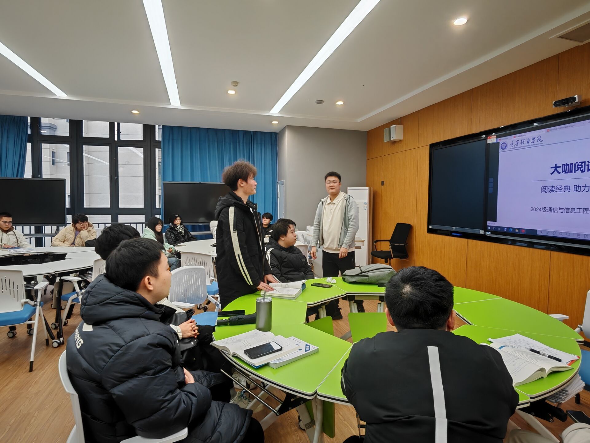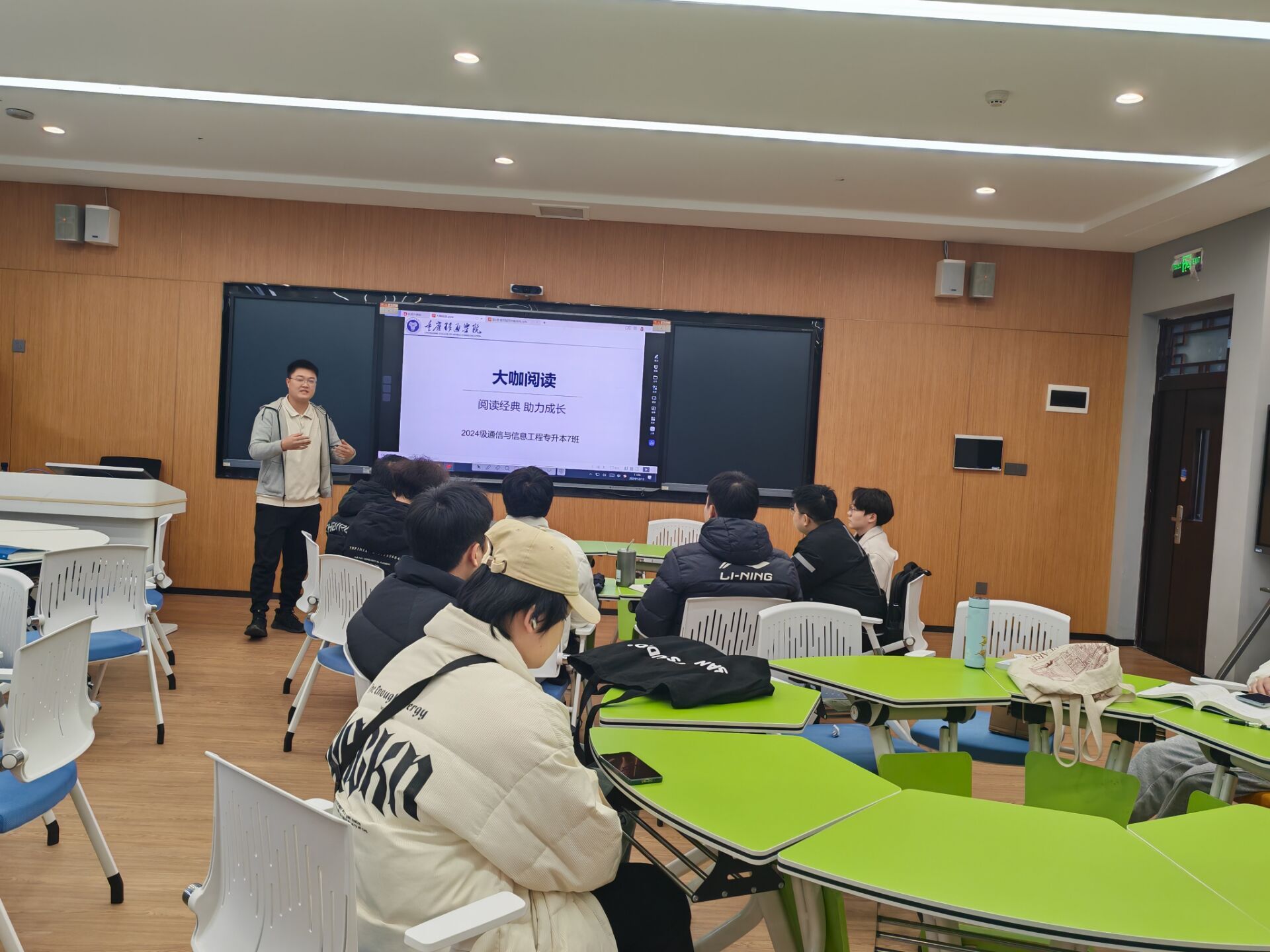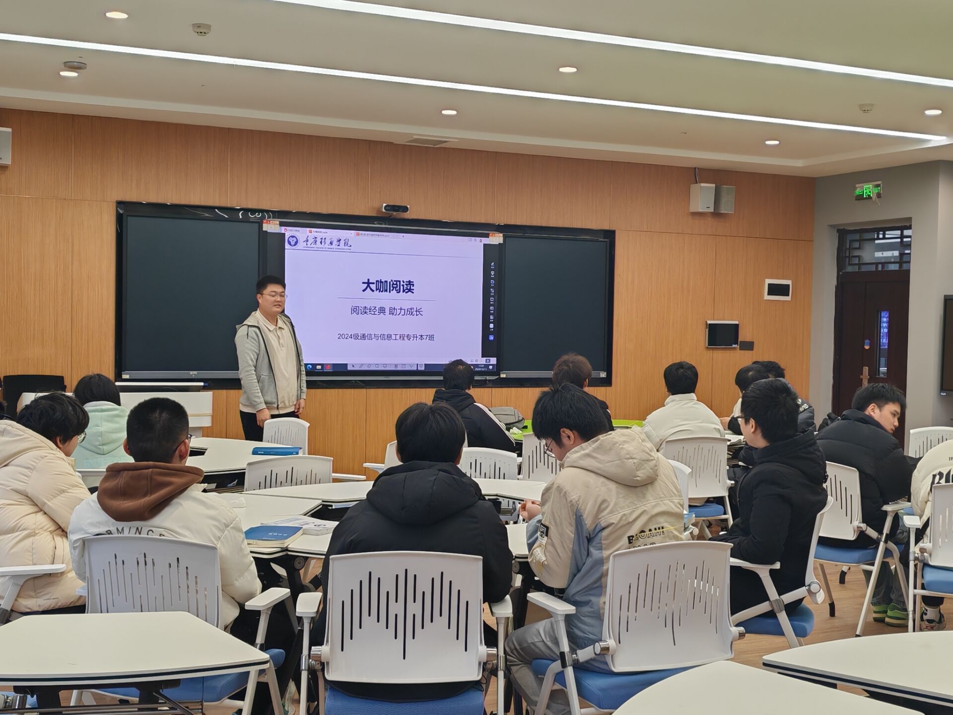 2024年12月13日,通信与信息工程学院2024级电子信息工程7班在天空书院302教室开展了“阅读经典,助力成长”大咖传记阅读讨论活动。此次活动由学业导师刘文臣老师主持,全班同学参与。