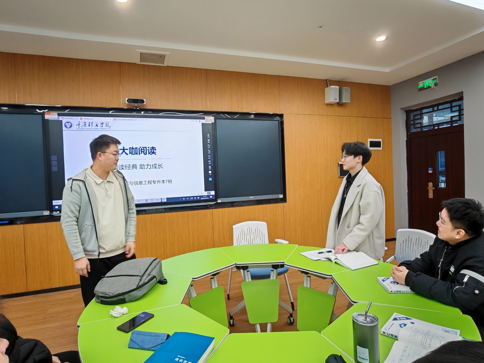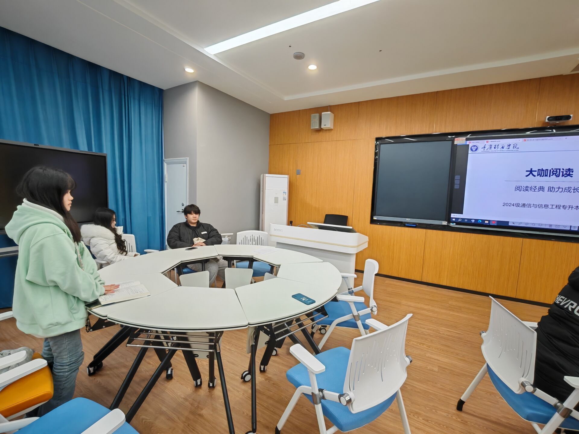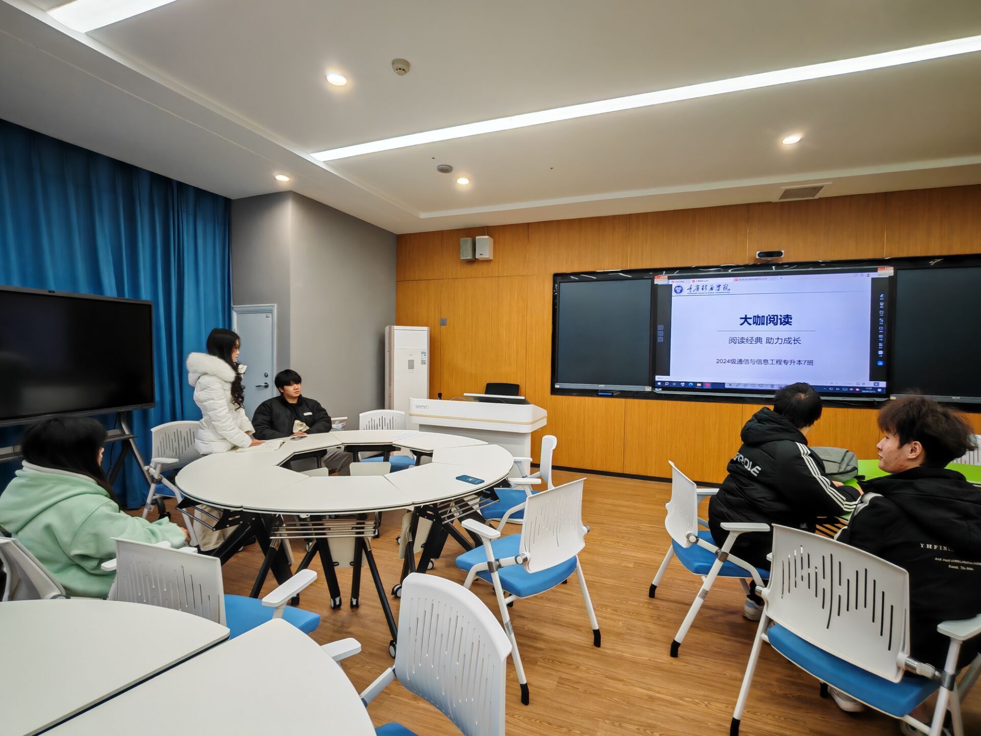 2024年12月13日,通信与信息工程学院2024级电子信息工程7班在天空书院302教室开展了“阅读经典,助力成长”大咖传记阅读讨论活动。此次活动由学业导师刘文臣老师主持,全班同学参与。