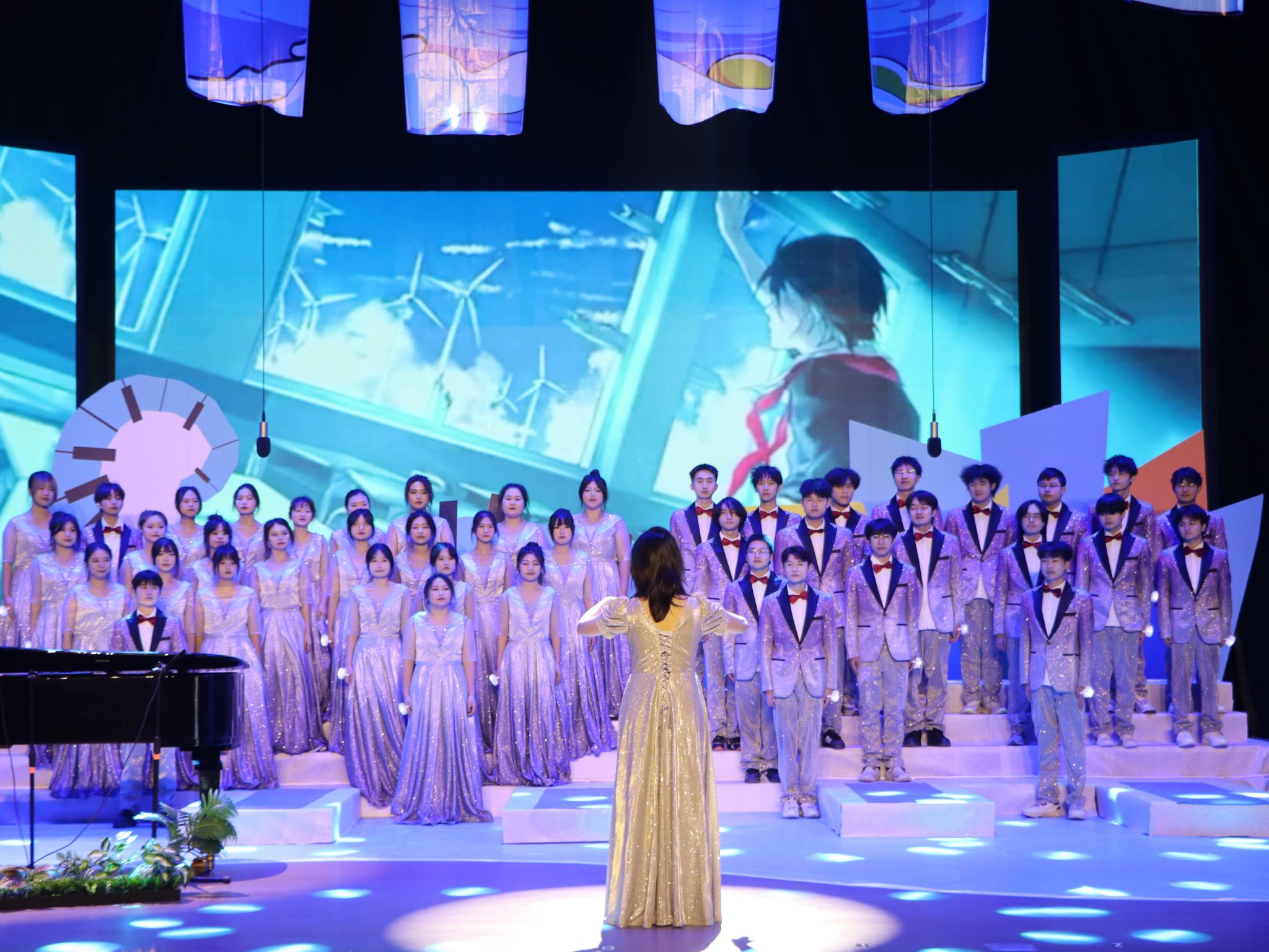 舞台上,灯光缓缓亮起,选手服装随音乐的节奏摆动,动人旋律与复杂和声展现出合唱独特魅力。每一个和声背后都彰显着团队默契。