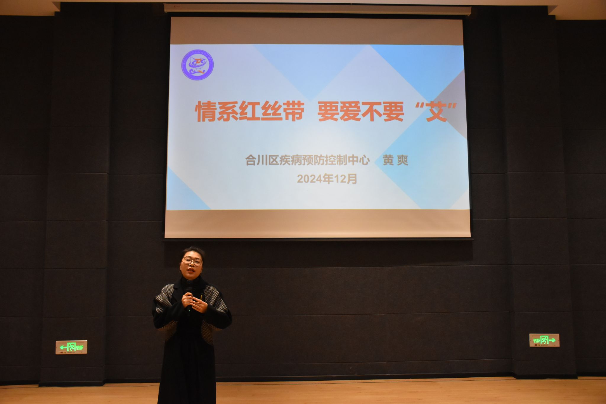 随后,合川区疾控中心为同学们带来了一场深刻且极具教育意义的讲座。黄爽老师通过展示真实案例图片等形式,向同学们直观地揭示了毒品和艾滋病的严重危害。一幅幅因吸毒而萎靡不振的面容,一个个因艾滋病陷入困境的家庭,让同学们深刻认识到这些问题并非遥不可及,而是与自身生活息息相关。并向同学们详细讲解了毒品的种类与危害,从传统毒品如鸦片、海洛因,到新型毒品如冰毒、摇头丸、K 粉等,以及它们对个人身体机能的损害,如摧毁神经系统、破坏心肺功能、导致免疫力下降等,还阐述了吸毒对家庭造成的经济负担、情感破裂以及对社会带来的治安隐患、传播疾病等多方面的恶劣影响。在防艾方面,黄爽老师普及了艾滋病的传播途径,包括性传播、血液传播、母婴传播,并纠正了一些常见的认知误区,如日常接触不会传播艾滋病等。同时,教导同学们如何在日常生活中进行自我保护,特别是在安全套的使用上黄爽老师