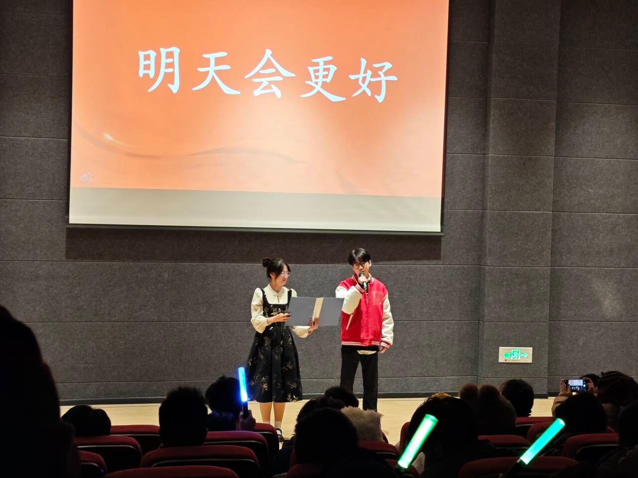 会议最后,由王婧和胡斌为同学们带来了歌曲明天会更好,以唤起同学们对艾滋病患者这一特殊群体的关注与同情,促使更多人去关心、理解和帮助他们,为他们送去温暖和支持,减少社会对艾滋病患者的歧视与偏见,使他们能够更好地融入社会,感受到社会的关爱与包容。同时也希望同学们积极向上、对未来充满希望的情感,能够在精神上给予艾滋病患者及其家属以慰藉和鼓励,让他们在面对疾病的困境时,依然能够心怀希望,坚定与疾病抗争的信念,增强生活的勇气和信心。