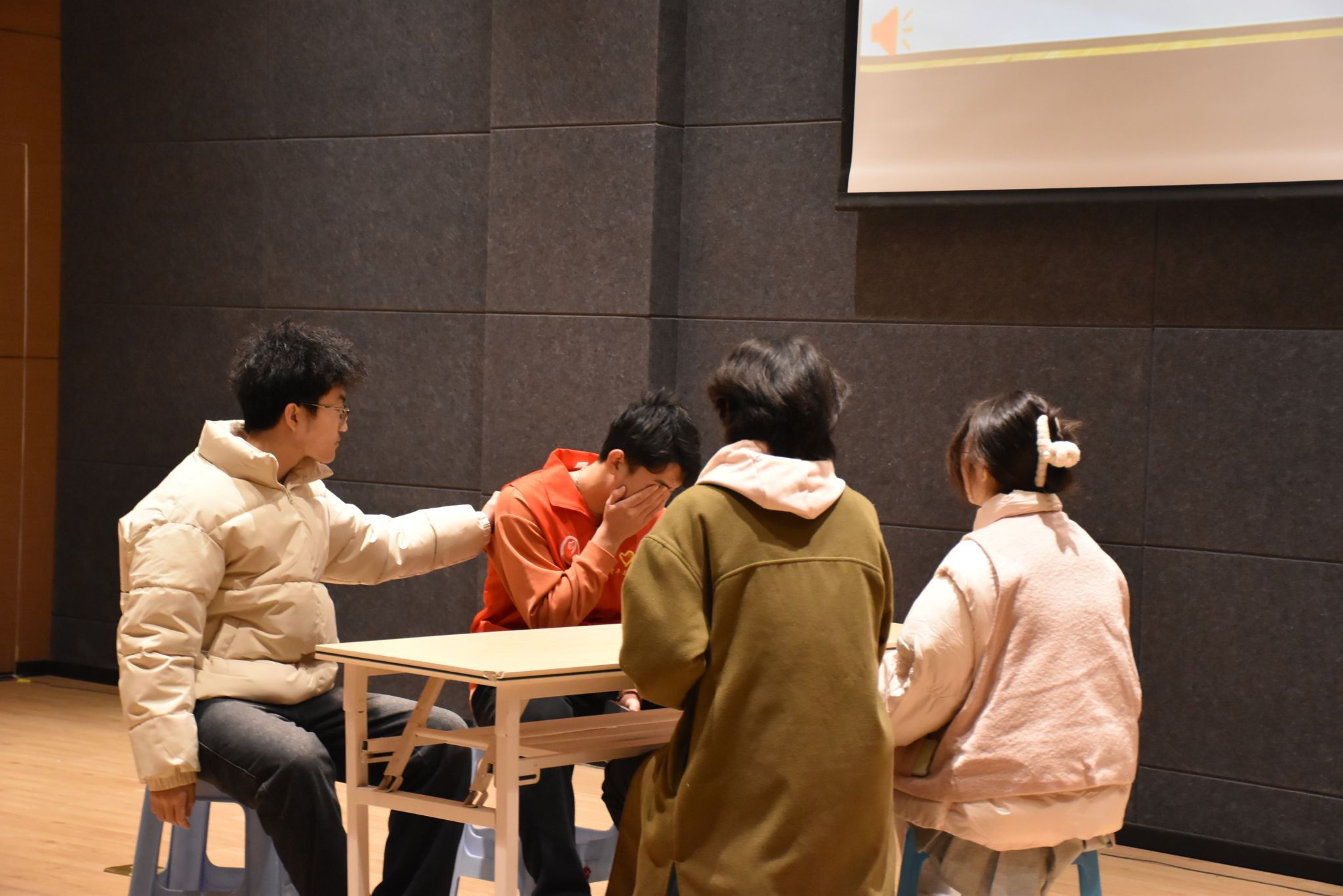 会议伊始,由周景瑞同学饰演的小欧以及“红丝带”禁毒防艾志愿服务专项支队的演员们为大家带来了精彩的情景剧,通过对艾滋病患者小欧的早期发病、后期治疗等进行演绎,让同学们了解到了对于艾滋病的传播并加深了同学们对艾滋病患者的关怀与理解。
