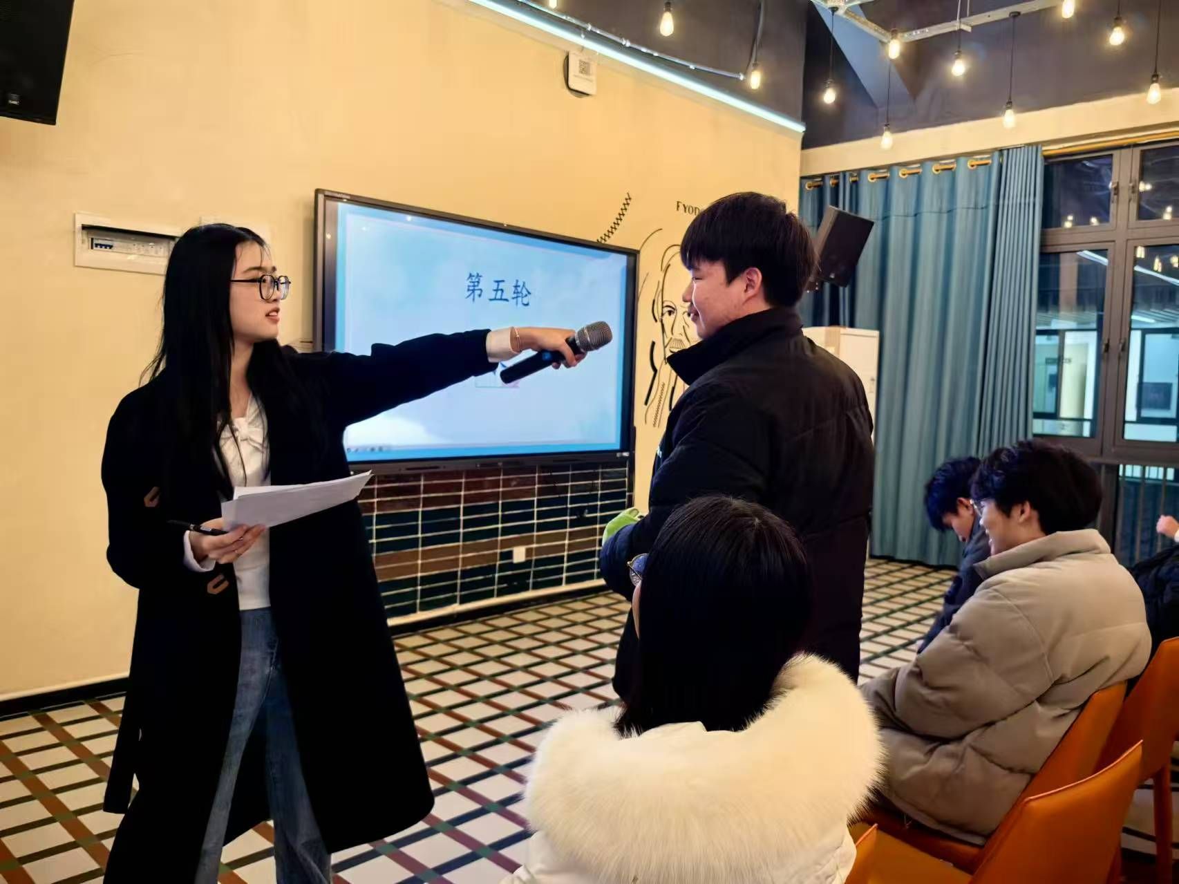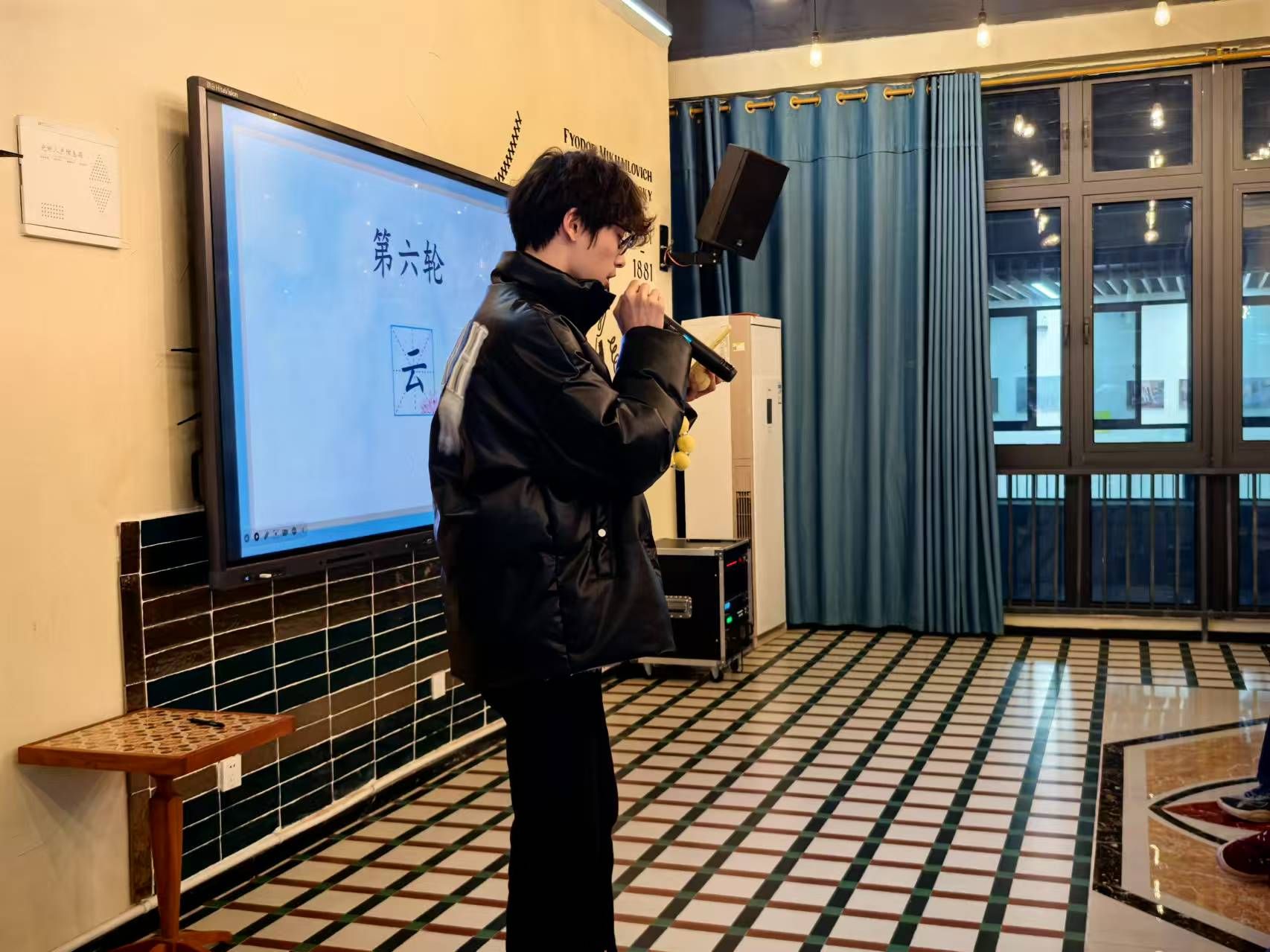 活动当日,同学们聚集在书店内。罗锦怡同学登台向各位同学介绍活动规则,随后罗锦怡同学宣布活动正式开始。随着一阵阵鼓声的响起,击鼓传花的游戏正式拉开了诗词飞花令的序幕。