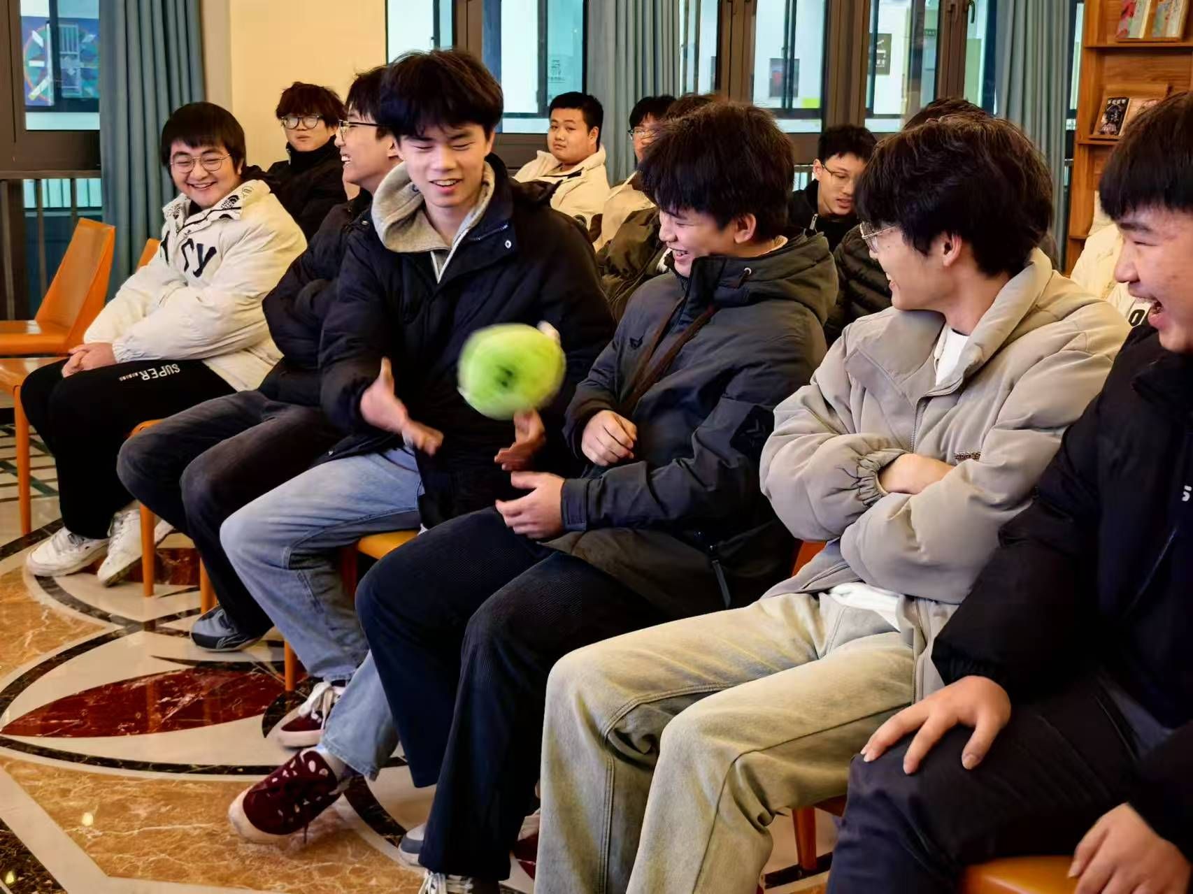 伴随着鼓声的节奏,被誉为“花束”的玩偶在同学们的手中快速地传递,当玩偶传递到每个人手中时,大家都赶快想要将玩偶传递出去。当鼓声停止,手持玩偶的同学起身,流利地吟出诗词。从充满田园诗意的“采菊东篱下,悠然见南山”,到尽显大漠豪情的“大漠孤烟直,长河落日圆”,再到饱含亡国之痛的“问君能有几多愁,恰似一江春水向东流”,每一句诗词都仿佛把大家带入了一个不同的时空,感受着诗人当时的心境。