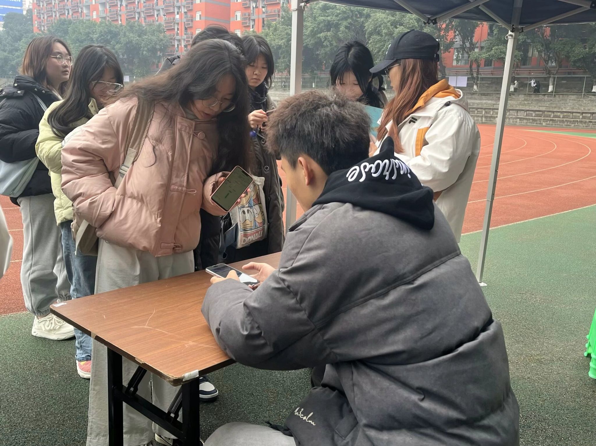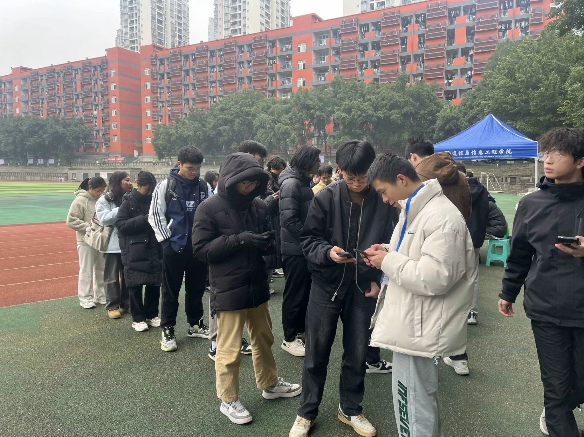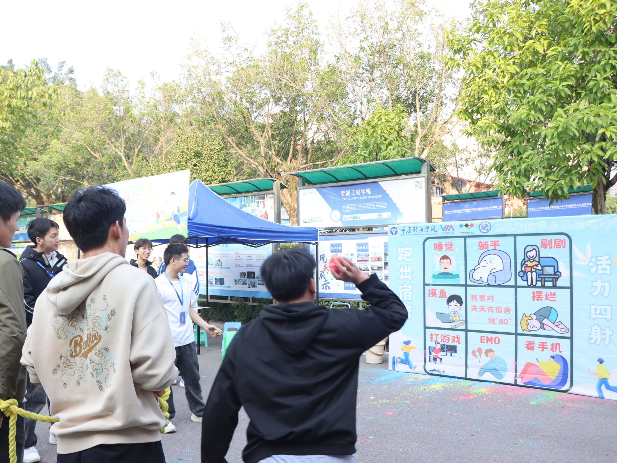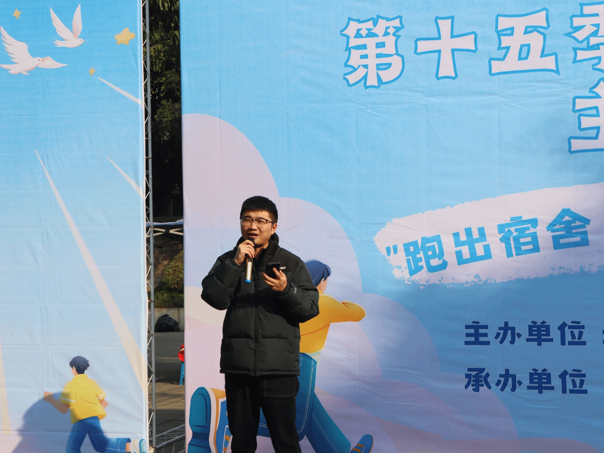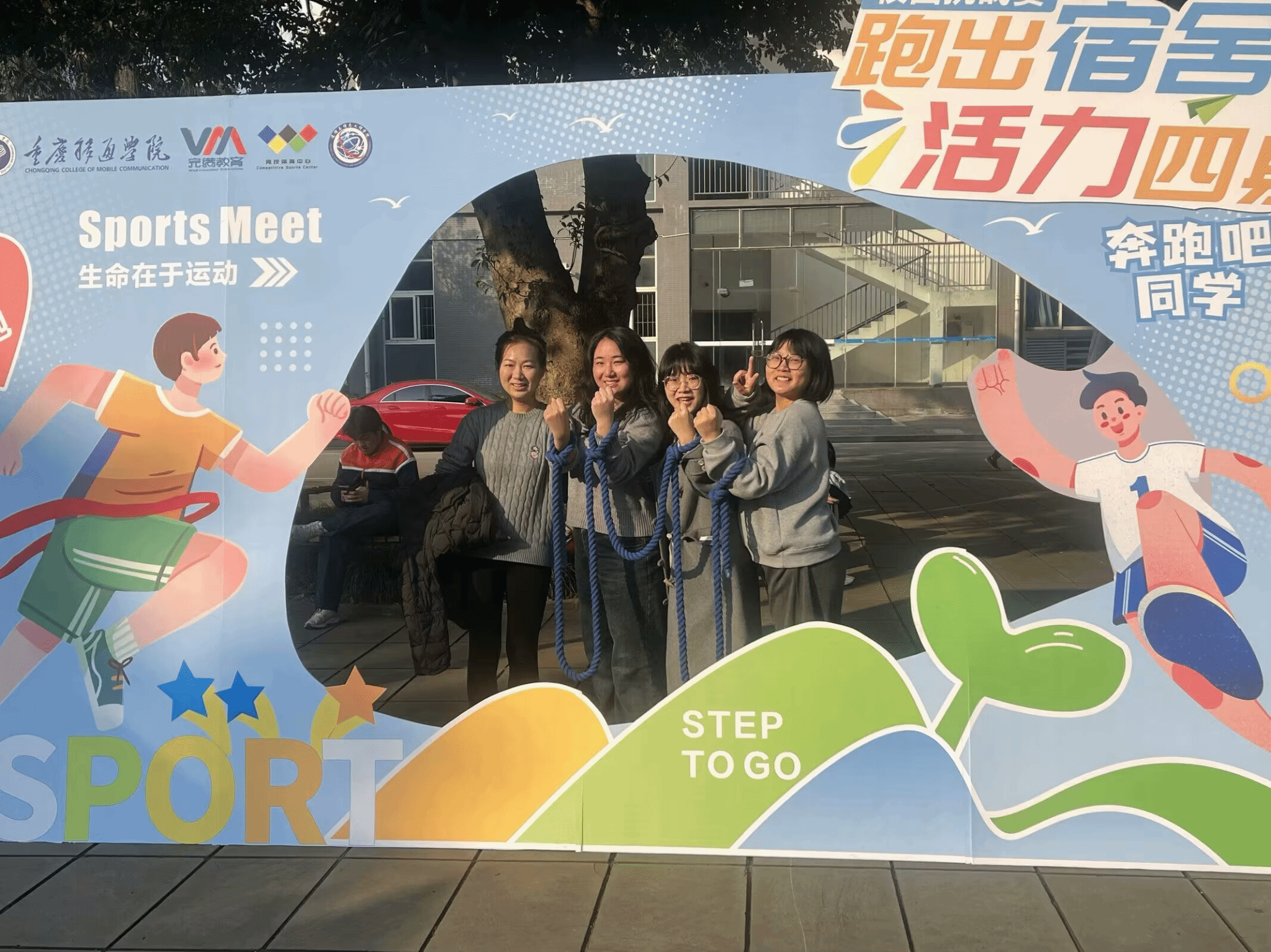 12月11日重庆移通学院(合川校区)第15季爱跑者打卡线下主题活动之“跑出宿舍,活力四射”校园挑战赛在南校区黄桷树广场圆满开展。通信与信息工程学院副院长熊斌老师、竞技体育中心体育活动部办公室主任岳振远老师、宿管中心副主任张旭老师、通信与信息工程学院团总支书记孙怡老师、学工办主任苟凡铖老师以及就业创业办公室主任李林燕老师等均莅临现场,并且为获得校园挑战赛的前三名的宿舍颁奖——第一名:干饭寝室,17 分 28 秒;第二名:一夜暴富寝室,18 分 07 秒;第三名:移通 SPA 寝室,18 分 28 秒 06