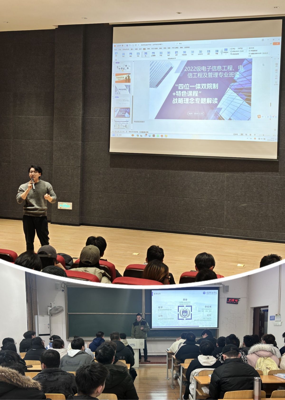“四位一体双院制+特色课程”育人模式,不仅注重学生的学术能力和专业技能培养,还非常注重学生的情商、创造力、领导力和综合素质提升。希望通过本次战略解读,同学们能更加清晰地认识“四位一体双院制+特色课程”,辅导员们也鼓励同学们积极参与校内外各类赛事和活动。希望同学们在重庆移通学院可以体验到最丰富多样的大学教育,找到最适合自己的成长路径。未来,通信与信息工程学院将持续致力于培养更多德智体美劳全面发展的数字经济时代的经营管理人才。