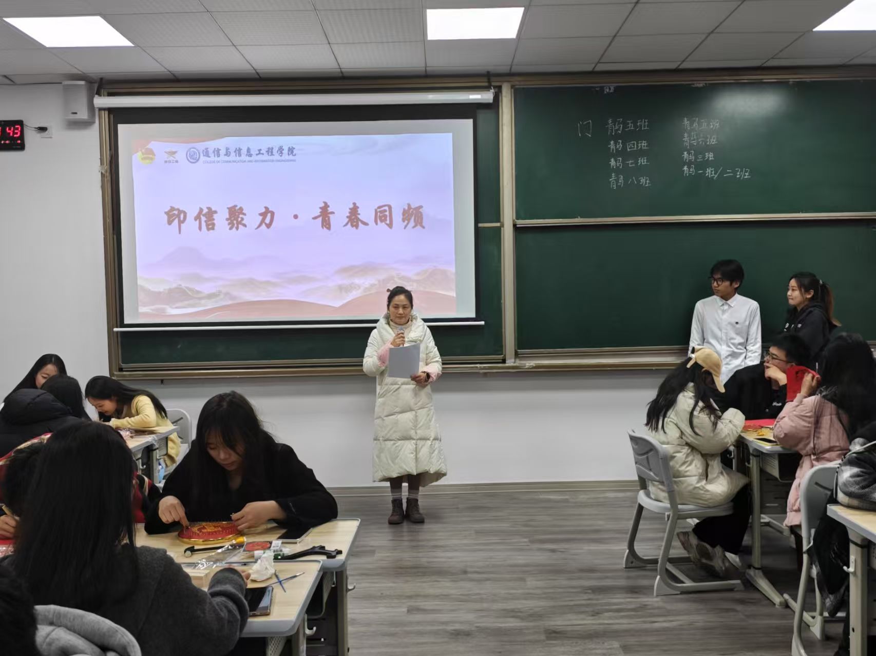 为深入学习贯彻党的二十大精神,全面落实习近平总书记关于青年工作的重要论述,通信与信息工程学院于2025年3月14日14点30在合川校区举办了第七期“青马工程”初阶班实践教学暨青春倡廉课程。本次课程以“青春向善,红心向党”为主题,创新采用“沉浸式学习+项目化实践”模式,通过“环保艺术创作”“非遗技艺传承”“廉洁文化浸润”三大模块,将雷锋精神、植树理念与青春倡廉教育有机融合,构建起立体化的思政教育体系。