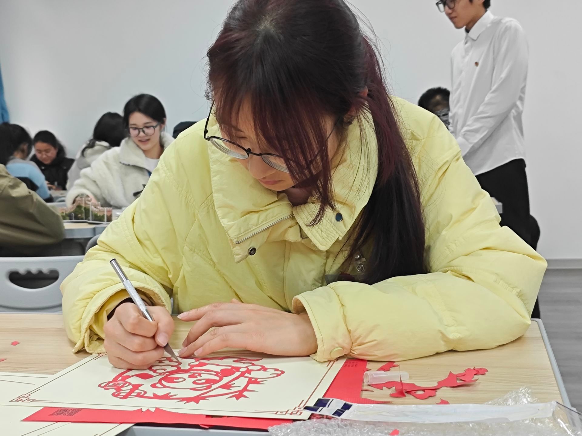 在“星火小夜灯”创作项目,学员们以光电科技赋能传统工艺,将红色和手工相结合,勾勒出祖国山河、红船、和平等等图案。点点星光既象征着革命火种代相传,更昭示着青年一代“强国有我”的赤子情怀。