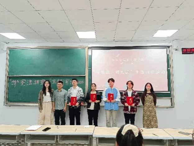 通信与信息工程学院学生会权益部联合学工于2024年10月9日下午15:00在第四教学楼4103教室开展了“学宪法、讲宪法”主题演讲活动。此活动旨在普及宪法知识、提升广大青年同学的法治意识、弘扬宪法精神、增强学生权益保护意识,本次活动邀请贾雪梅、徐明飞、杨洁、陈珍老师担任评委,共有十余名充满活力的青年学子轮番上台,就“宪法”这一主题展开深刻而独到的理解与分享。