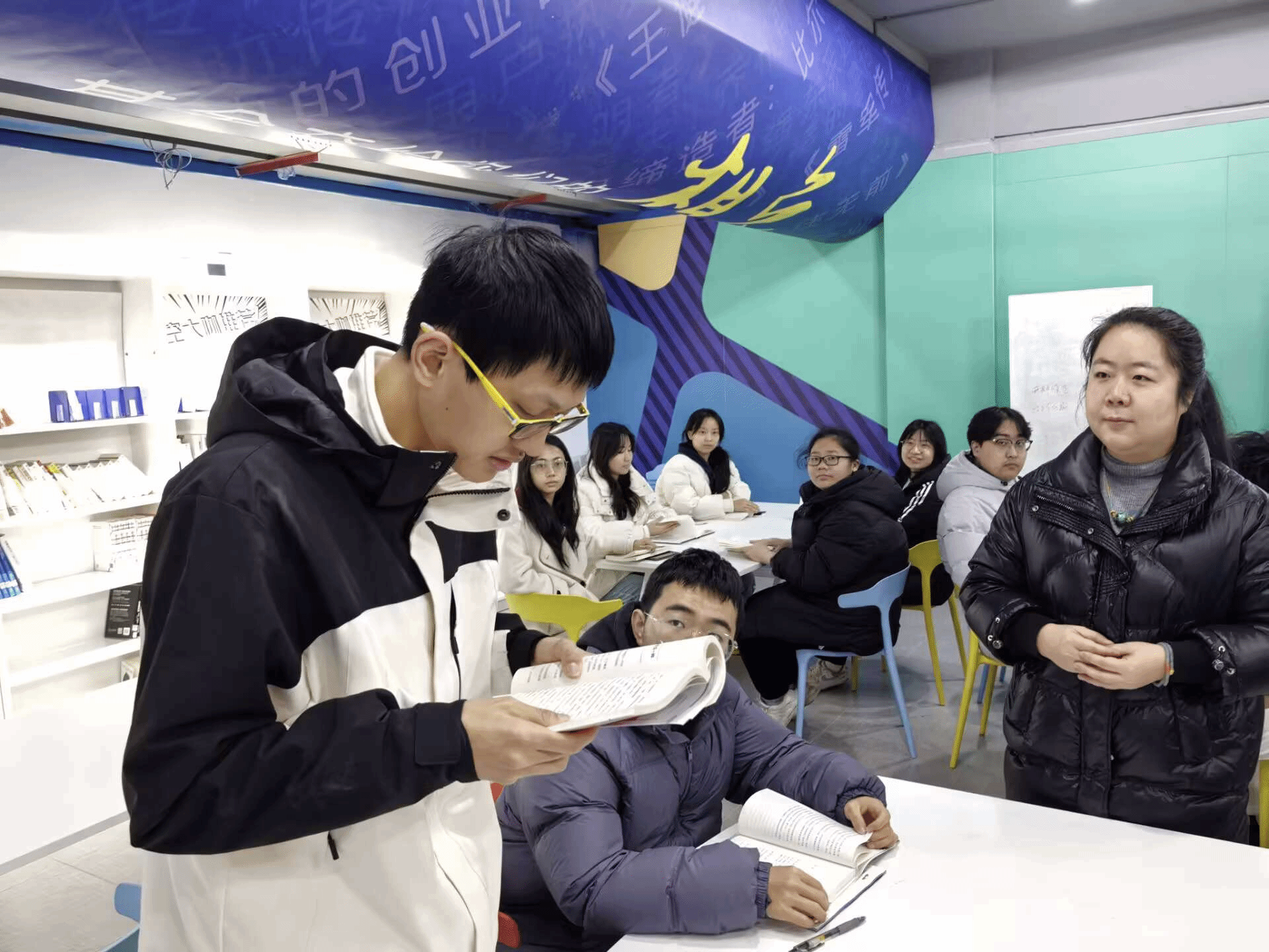 活动伊始,霍佳璐老师向同学们强调了本次活动的意义。“在信息爆炸的时代,我们不能局限于专业知识的学习,跨界阅读能够拓宽视野,激发创新思维。而阅读大咖们精心撰写的书籍,更是站在巨人的肩膀上看世界,汲取他们的智慧与经验。”她的话语如同一盏明灯,照亮了同学们对本次阅读之旅的期待。
