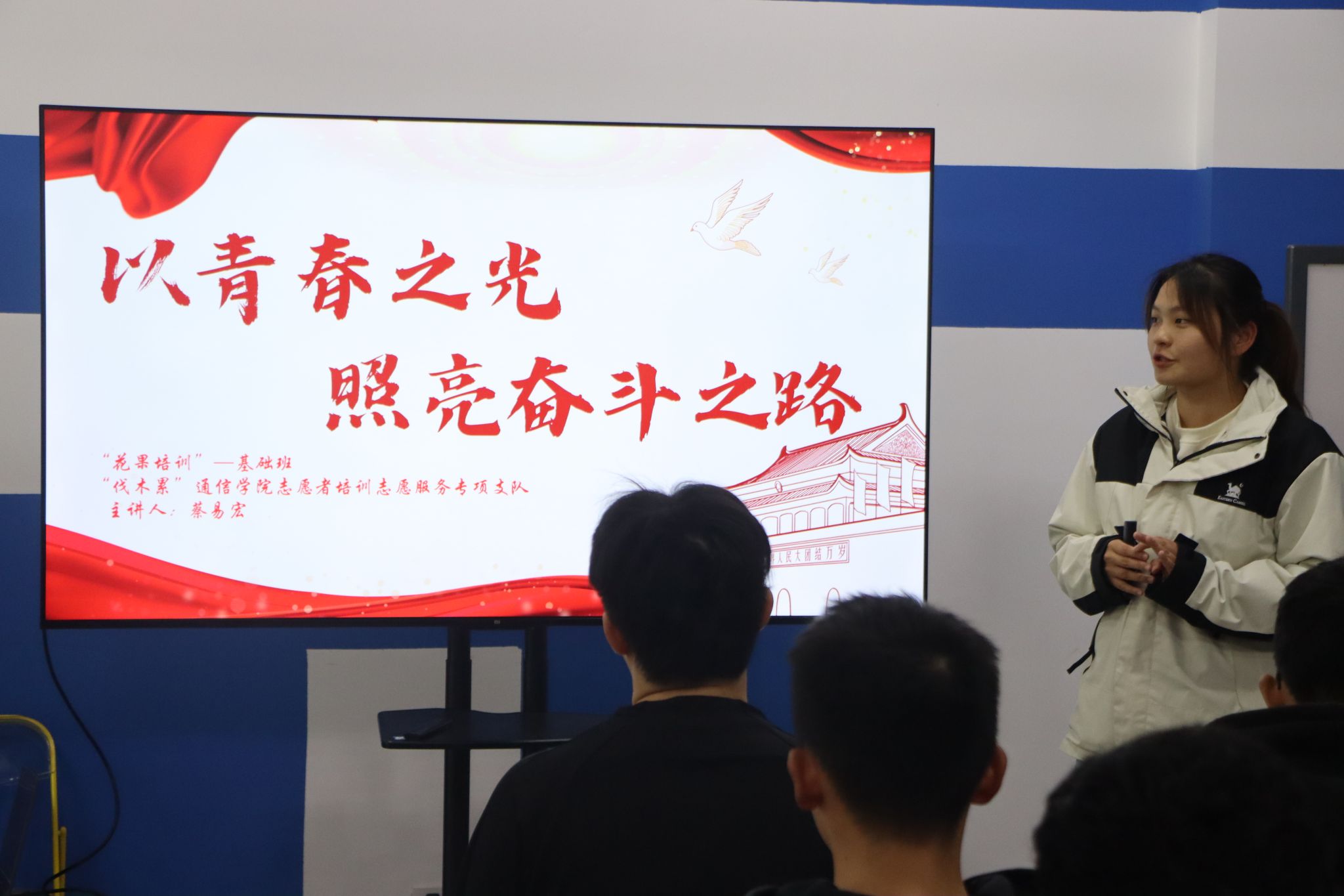 为弘扬雷锋精神,引导大学生志愿者从身边小事践行服务初心,2025年3月19日下午14:00,通信与信息工程学院“伐木累”志愿者培训志愿服务专项支队联合“党青之光”理论宣讲志愿服务专项支队,在天空书院青空朋辈畅谈室共同举办“雷锋精神·故事传承”雷锋月主题活动。花果培训骨干班全体成员及志愿者代表共50余人参与活动。
