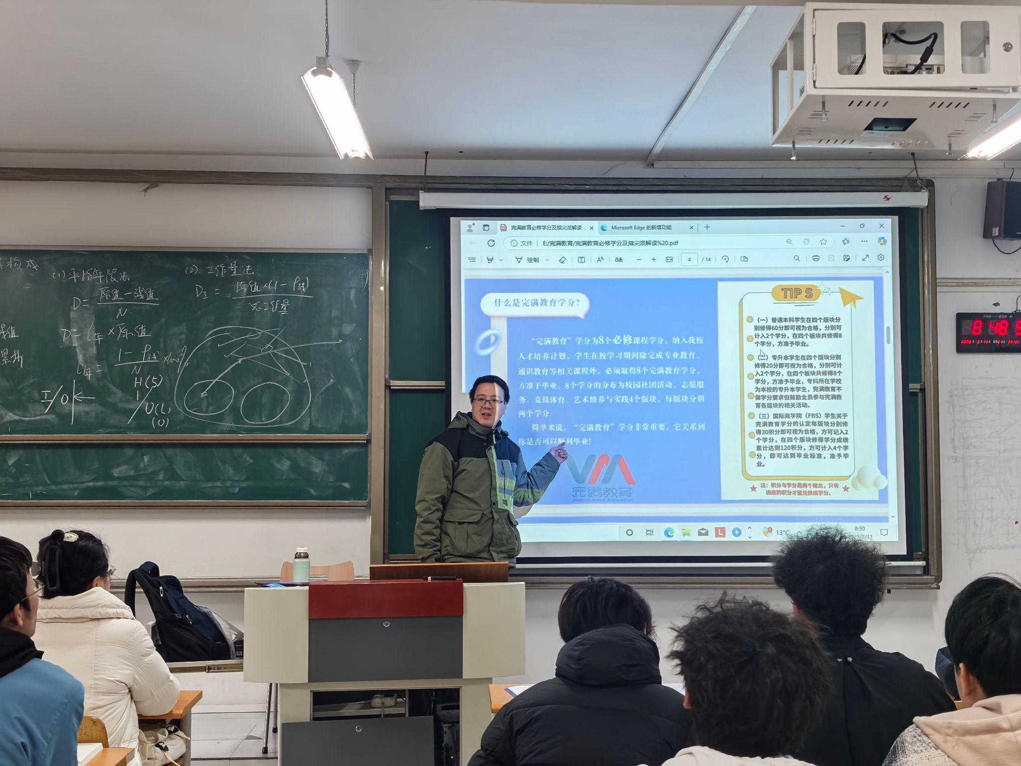 为确保同学们深入了解完满教育学分四个板块学分构成以及成绩认定标准,辅导员老师们进行了全方位的细致讲解,为同学们勾勒出一副清晰的完满成长蓝图,解读过程中辅导员老师们还结合自身经验,讲述了完满教育如何助力个人在学业、社交、能力等多方面的成长,激发同学们参与完满教育活动的积极性。