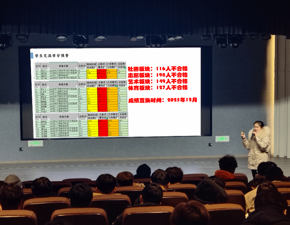 为帮助同学们在完满学分修读上的不足,制定新学期的完满目标。通信与信息工程学院全体辅导员们积极行动,于2025年3月5日到3月12日在各多功能室有序开展了“完满学分预警”警示教育会,主要讲述完满学分的构成,完满学分的转换规则和完满学分动态管理机制。