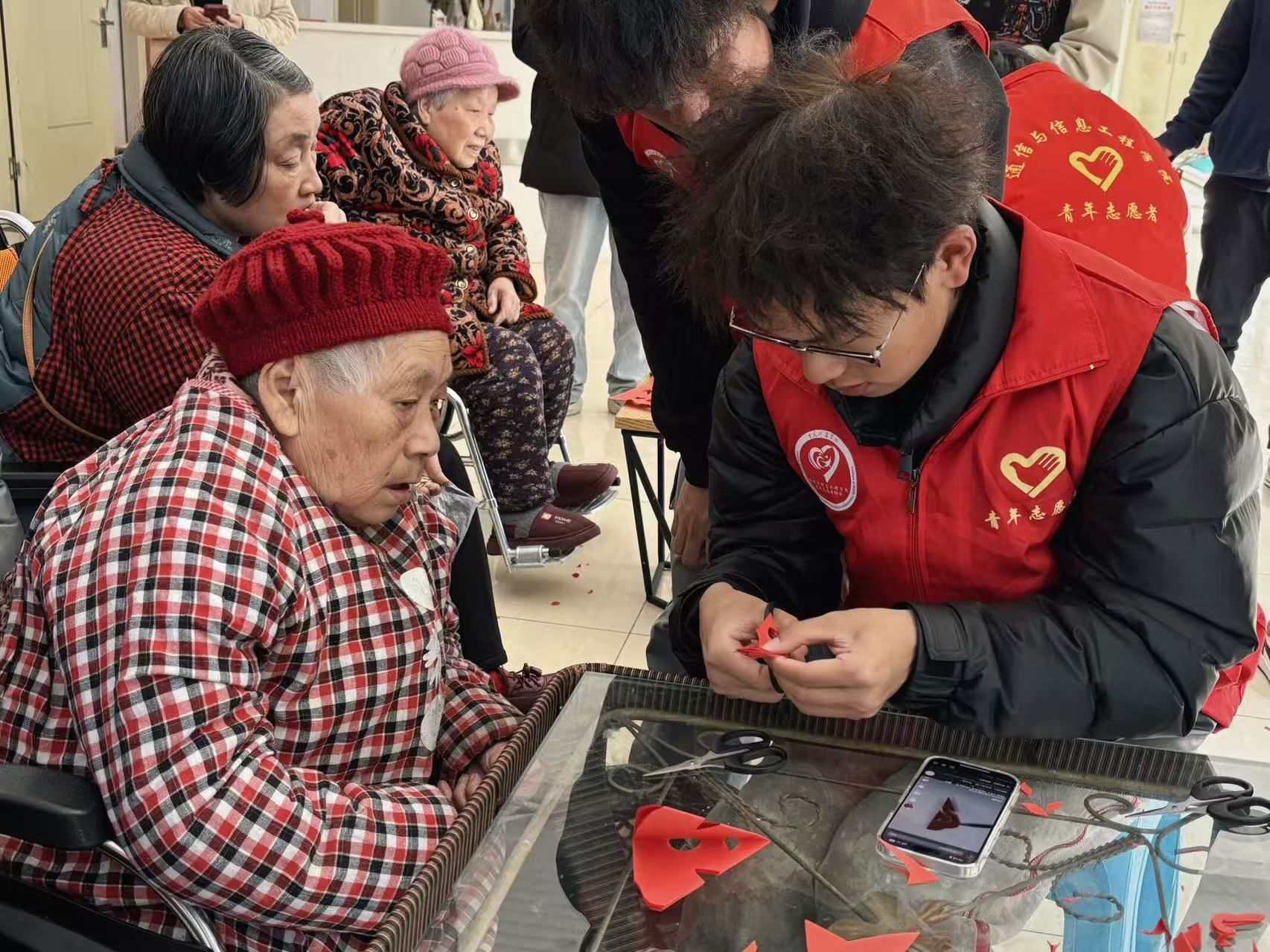 剪纸艺术是中国传统的民间艺术形式之一,为了让老人和同学们感受到剪纸艺术的独特魅力,增强对传统文化的兴趣和认同感。重庆移通学院通信与信息工程学院“幸福来敲门”关爱社区空巢老人志愿服务专项支队,联合2024级通信工程04团支部于2025年4月2日下午,在长者乐养老院开展了以“青耆童梦,暮光春色”之——剪纸风华,青耆筑脉为主题的志愿服务活动。此次活动共计参与人数50人,受益人数248人。