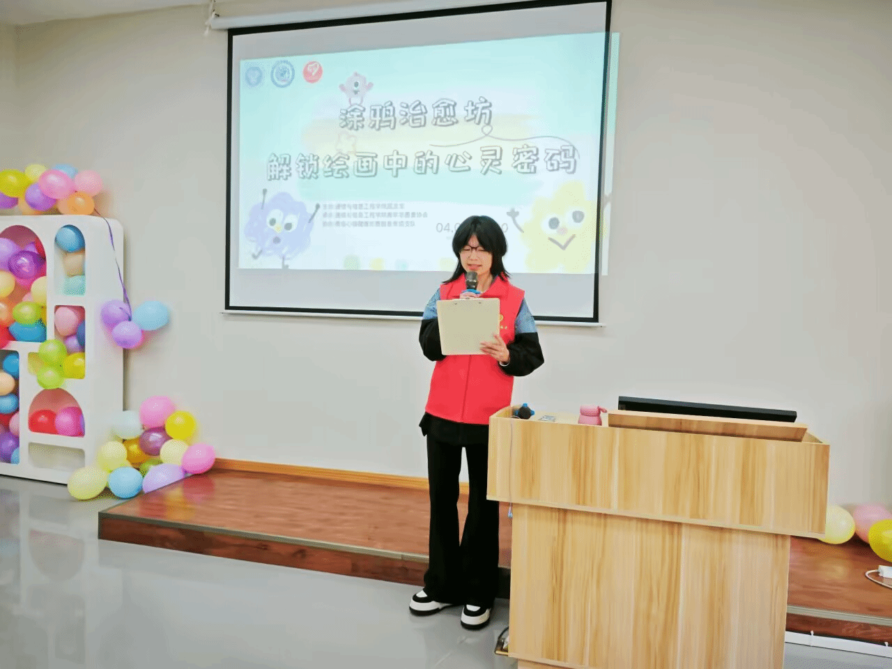 聚焦大学生心理健康需求,通过创意涂鸦助力情绪释放,4月2日12:30,“微语”心理健康志愿服务专项支队联合2024级通信工程11支部一起在南湖书院智慧教室(106)举办了“涂鸦治愈坊:解锁绘画中的心灵密码”主题活动。本次活动吸引了80余名学生参与,通过创意涂鸦、小组互动等形式,帮助同学们释放压力、探索内心,传递了“艺术疗愈”的温暖力量。