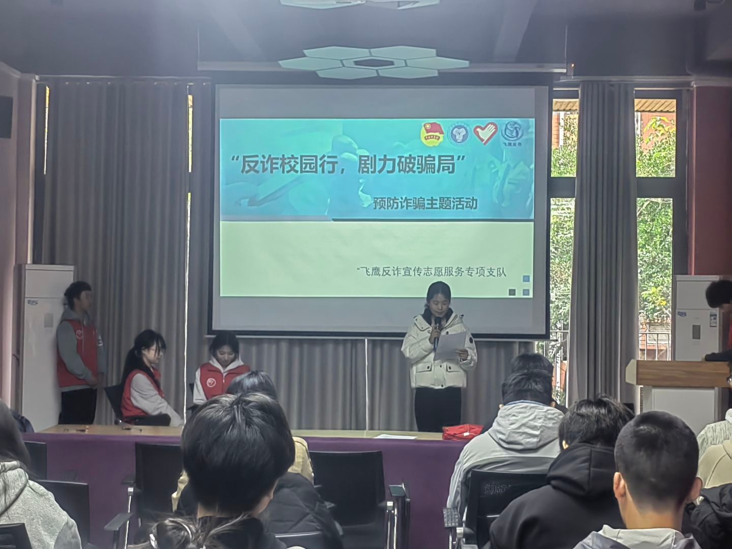 在数字化浪潮的席卷下,诈骗手段不断翻新,校园这片净土也面临着诸多诈骗威胁。为提升广大师生的防范意识,2025年4月2日,飞鹰反诈支队于别都书院四度空间成功举办了“反诈校园行,‘剧’力破骗局”完超活动,通过创新形式,为校园筑牢反诈防线。