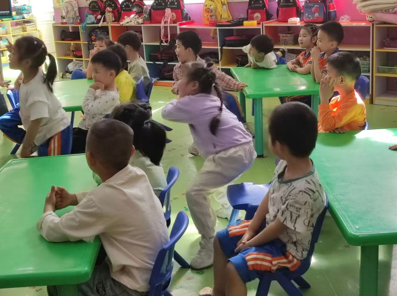 最后的展示环节,每组小朋友都勇敢地走上台,讲述自己学到的成语以及背后所涵盖的故事。尽管他们的表达还稍显稚嫩,但每一个动作、每一句话都充满童真。台下的小朋友和志愿者们认真聆听,并不时报以热烈的掌声,为他们加油鼓劲。