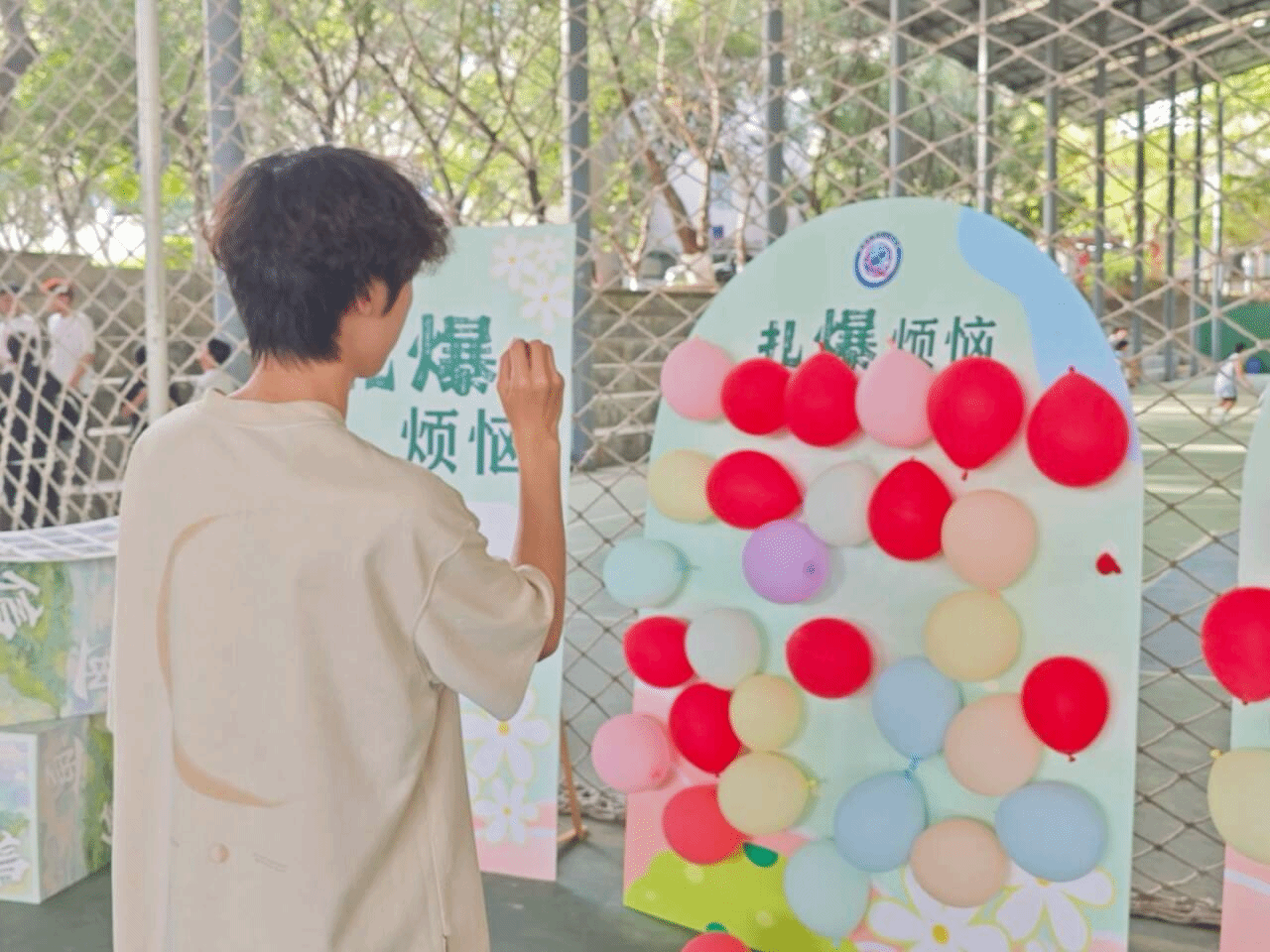 活动开场别具一格,入口处气球缤纷。同学们手持竹签扎向气球,“砰砰”声此起彼伏。有的同学动作利落,一脸畅快;有的同学则故意逗趣,引得旁人欢笑。五彩纸屑飞扬,现场氛围热烈欢快,大家迅速融入,为活动拉开活力序幕。