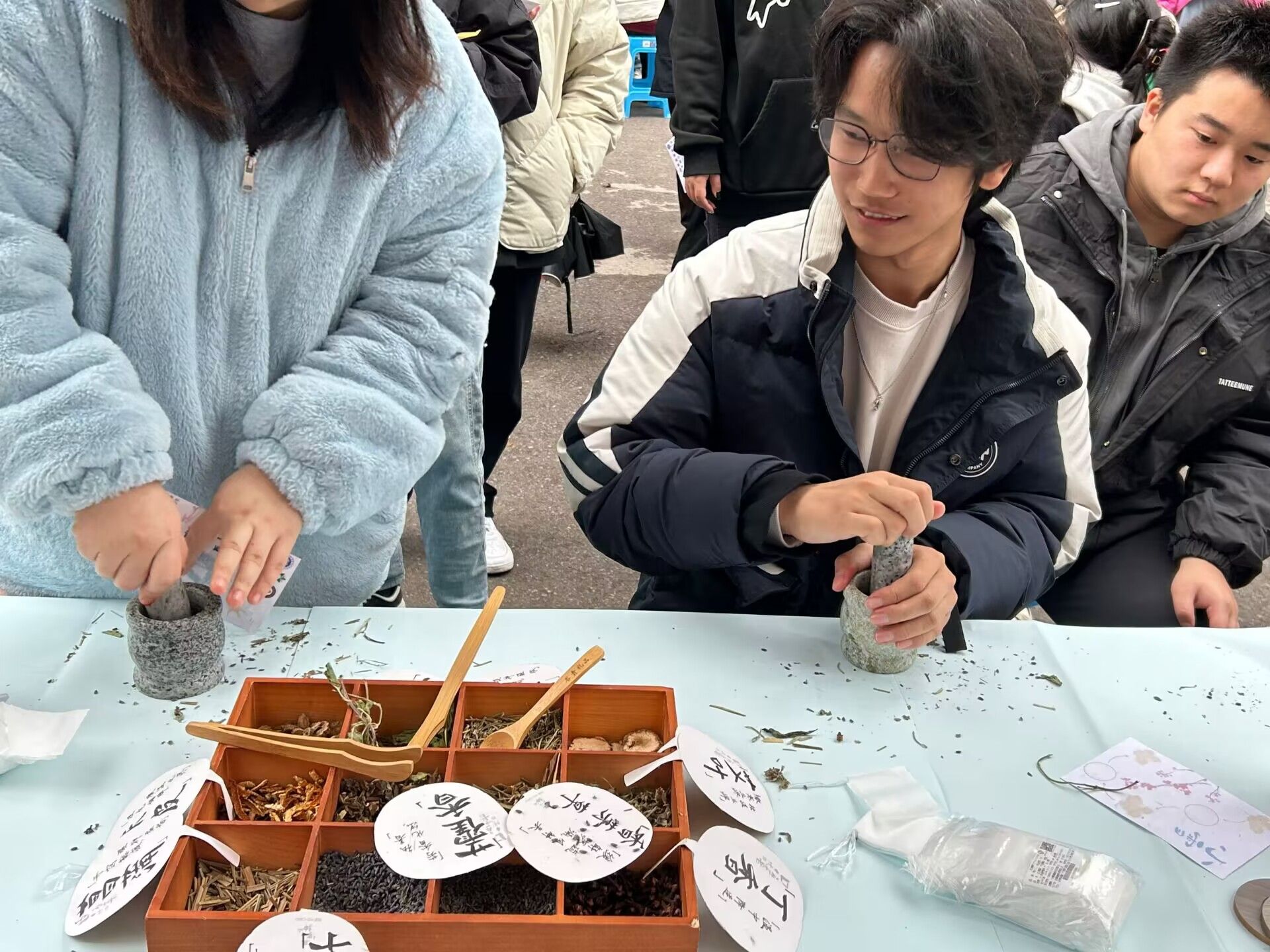 香料的芳香在空气中弥漫,同学们挑选自己喜欢的香料碾碎装进香囊里,香囊虽小,却承载着驱虫辟邪、祈愿安康的古老寄语。让同学们在锤碾过程中释放压力,在传统习俗体验里寻得归属感,丰富校园生活。