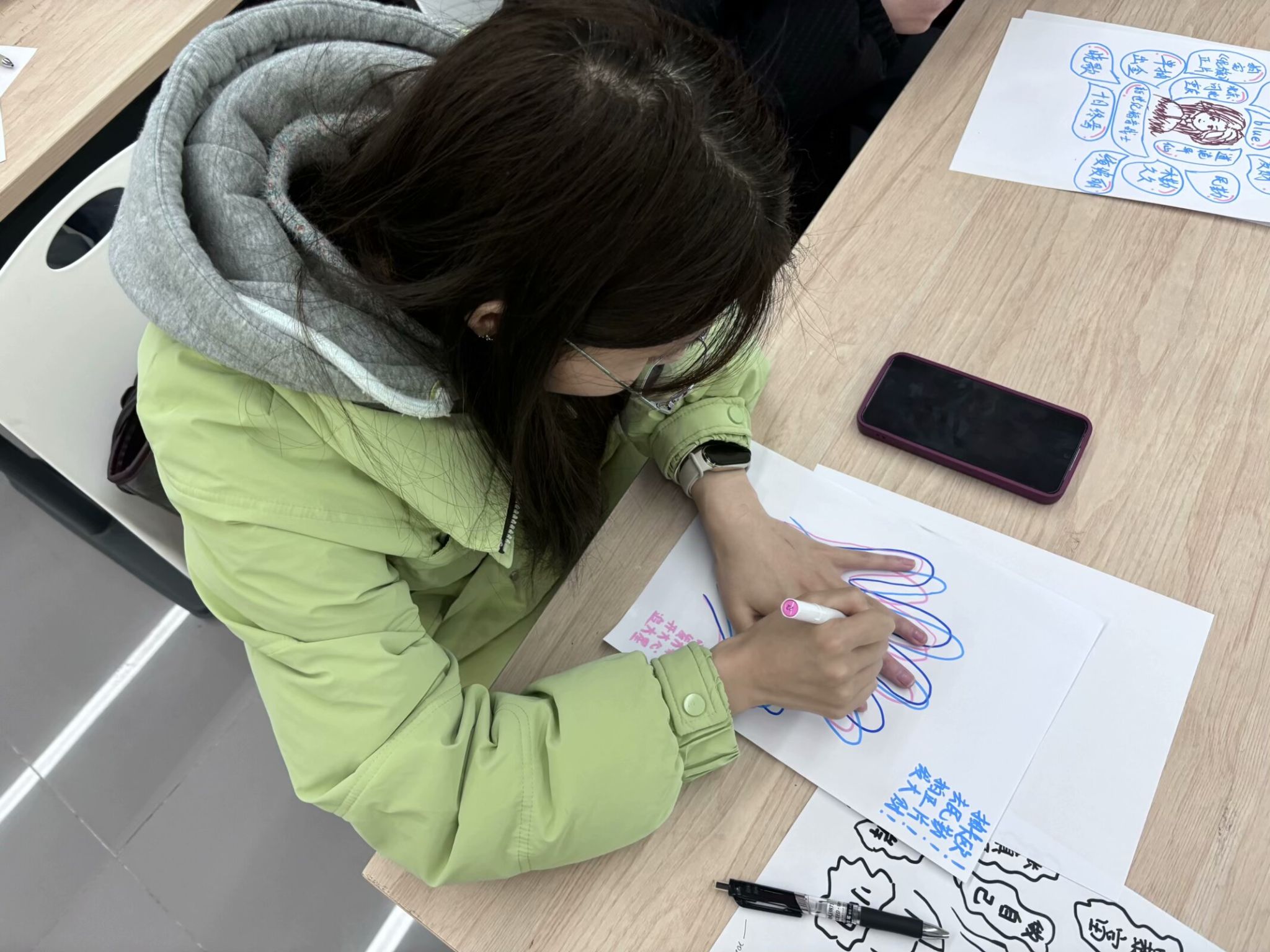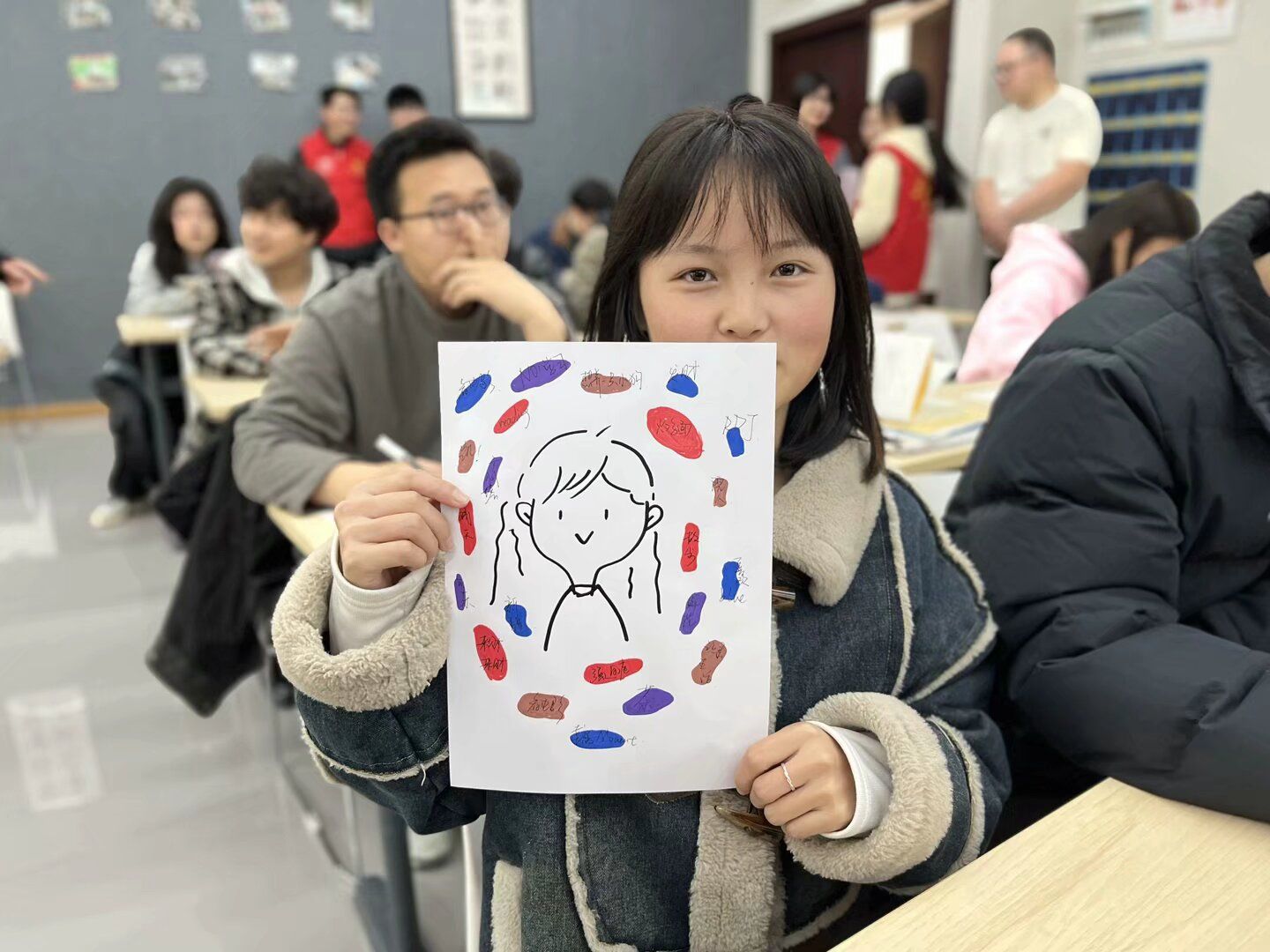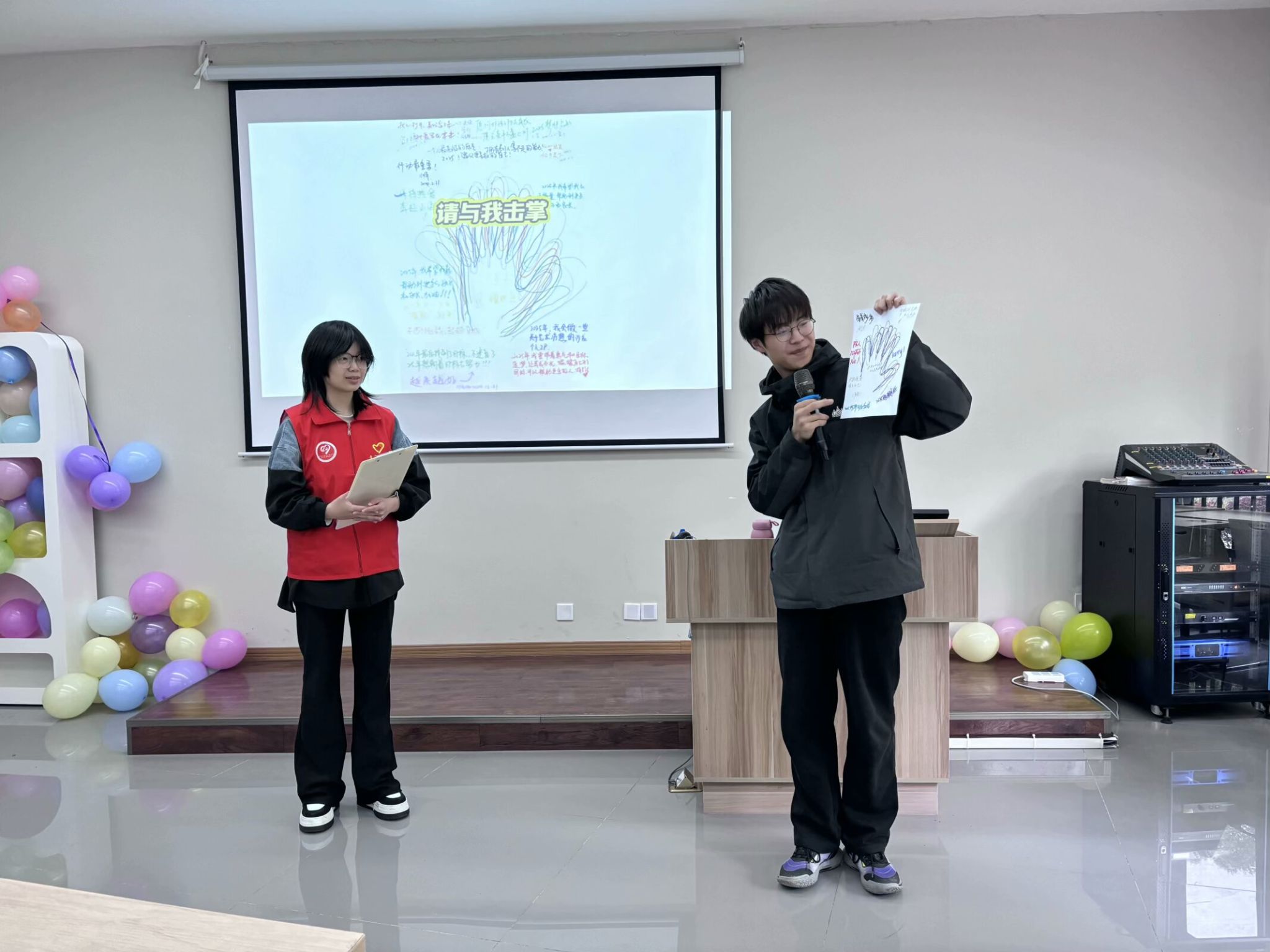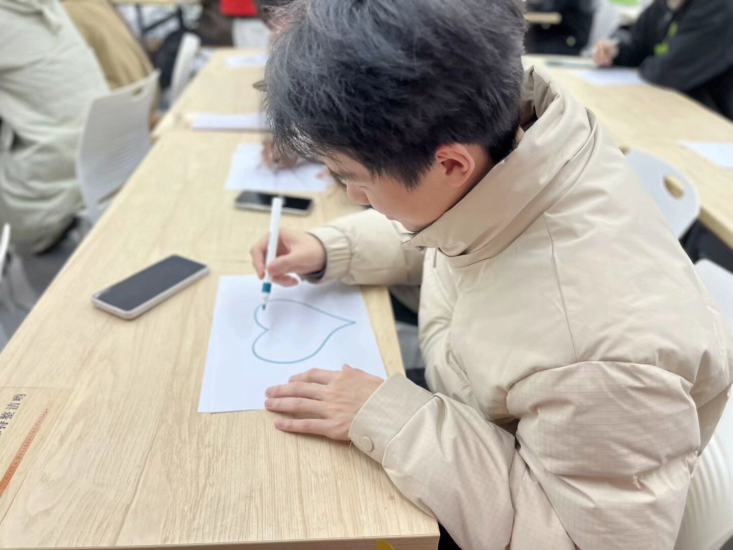 爱,是人类永恒的主题,也是人们内心深处最柔软的部分。在这次活动中,主持人引导参与者深入思考爱与被爱的意义,以及自己内心深处对爱的渴望和期待。爱是什么形状?什么颜色?同学们用画笔在纸上尽情描绘,每一幅作品都是对爱的独特诠释,都承载着同学们对爱的深刻感悟。画完后,同学们轻轻拥抱自己,因为能描绘爱的人,早已拥有爱的能力。在这个快节奏的时代,人们常常忽略了对爱的表达与感受,而这次活动,让同学们重新审视爱的意义,学会珍惜身边的人,用心去感受爱的存在。这一环节有助于同学们在心理上建立起对爱的正确认知,增强心理安全感,更好地应对情感需求与人际关系问题。