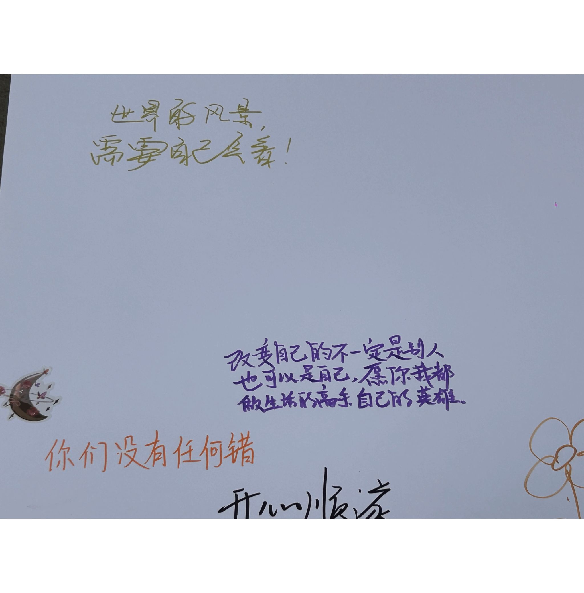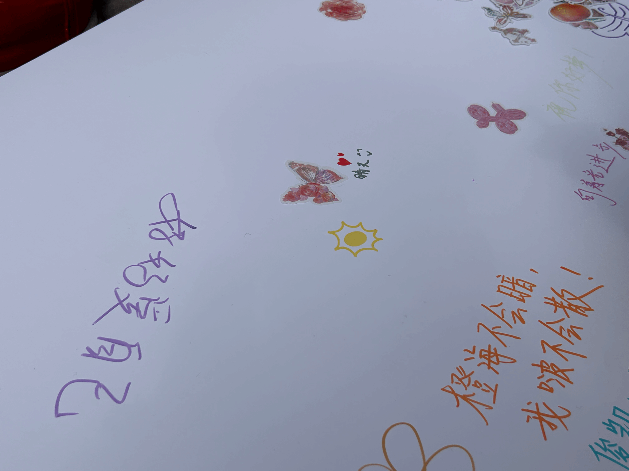 “小星星,我想对你说”的环节同样吸引了众多同学的目光。大家纷纷在定制kt板前驻足,拿起笔,在上面写下了自己最真挚的话语。有的同学写道:“亲爱的小星星们,勇敢地向前走吧,这个世界充满了爱与美好,你们并不孤单。”有的则呼吁:“社会各界的朋友们,请给予孤独症群体更多的包容与关怀吧,让他们能够在温暖的阳光下茁壮成长。”这些话语,如同点点星光,照亮了孤独症患者前行的道路。
