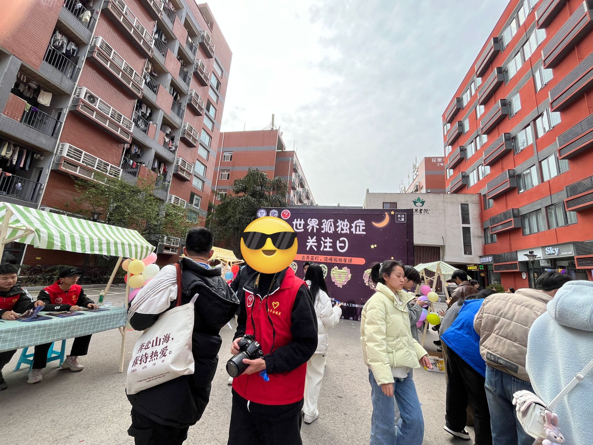 早在活动筹备阶段,全体工作人员便怀着高度的责任感与使命感,以饱满的热情全身心投入到各项工作中。宣传制作组的同学们宛如一群创意无限的艺术家。他们反复琢磨宣传海报的构图,精心打磨宣传册的文案,细致设计科普展板的内容。将孤独症的定义、成因、症状表现、干预方法等关键信息,巧妙地融入到宣传资料里。活动中期,现场的流程紧凑且流畅,一切都在有条不紊地进行着,秩序井然。活动正式拉开帷幕后,主持人便引领着同学们前往签到点。在此过程中,工作人员为大家发放了精心准备的孤独症知识传单,上面详细地介绍了孤独症的相关信息,包括症状表现、形成原因以及如何给予帮助等内容,力求让每一位同学都能对孤独症有更深入的认识。与此同时,摄影组的成员们迅速就位,目光敏锐地捕捉着活动中的每一个精彩瞬间。