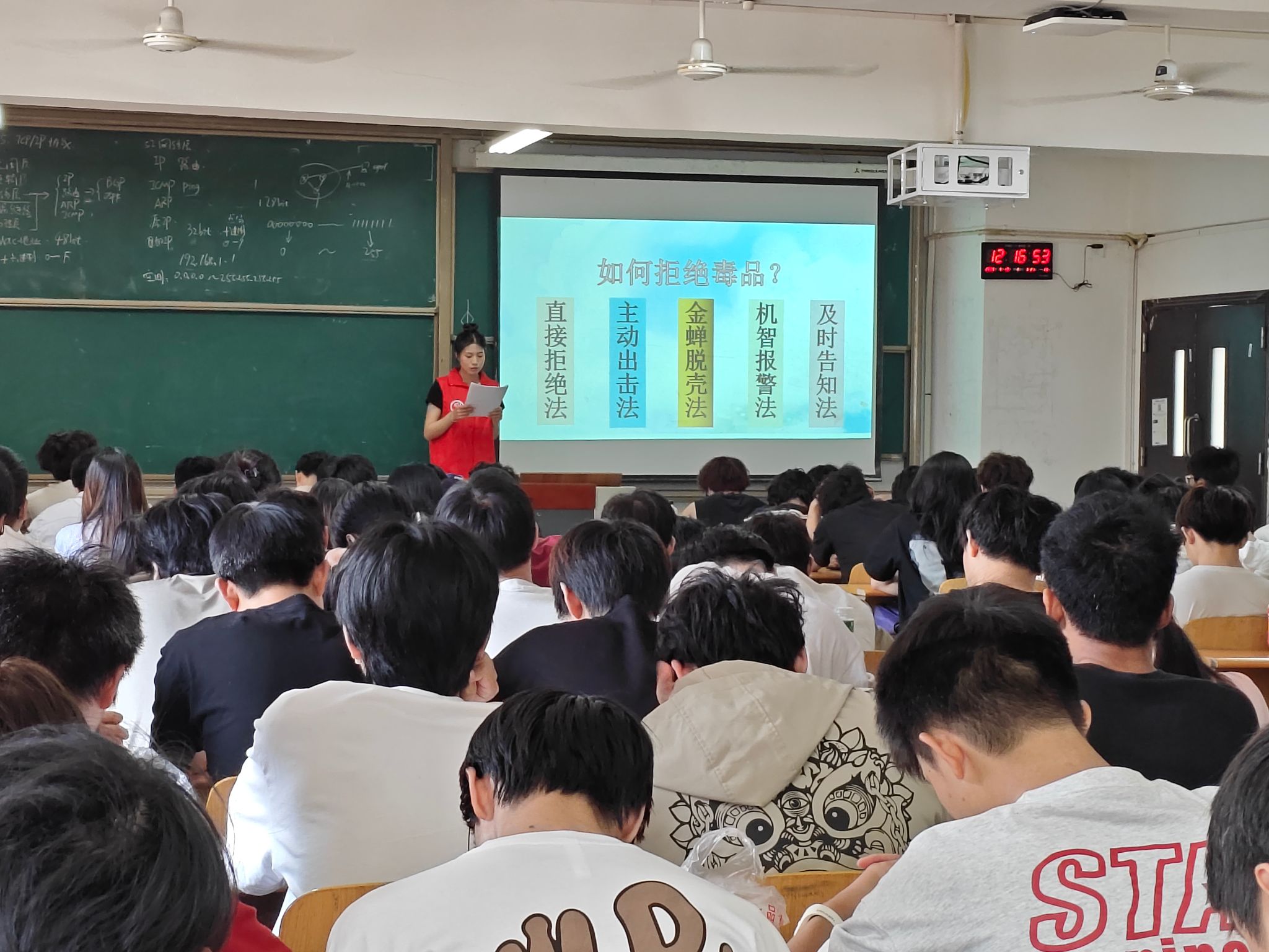 活动期间,志愿者祝榕健同学通过图文并茂的PPT演示,向同学普及了传统与新型毒品的种类、成瘾机制及其对个人健康、家庭幸福和社会稳定的严重危害。在知识讲解之外,宣讲还结合典型毒品犯罪案例分析,以案释法,让同学们深刻认识到毒品对人生轨迹的毁灭性影响。活动现场设有互动问答环节,参与同学踊跃发言,积极答题,进一步巩固了所学知识。