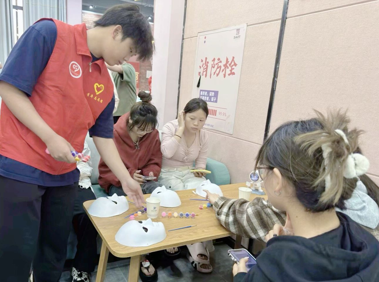 4月25日,“微语”心理健康志愿服务专项支队在别都书院朋辈交流中心开展“彩笺塑面 灵犀映心”面具创作主题活动。同学们在充满艺术创造与心灵对话的温暖氛围中,通过音乐共鸣、手工实践与故事分享,探索情感表达与内心世界的联结。