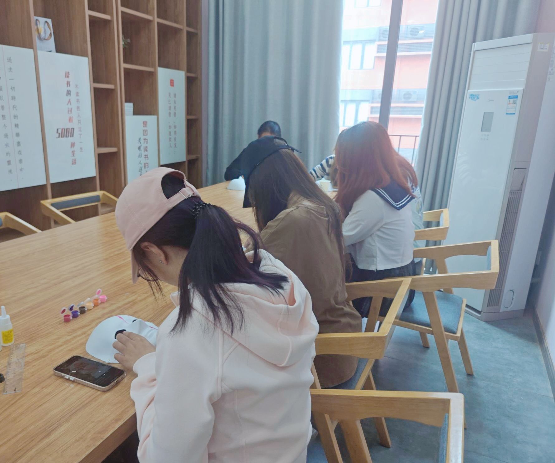 在面具制作实践环节,参与者使用空白纸浆面具、羽毛、亮片、颜料等材料自由创作。志愿者俯身穿梭指导,手把手雕琢色彩层次与立体装饰,让情感在面具纹理间悄然生长 。有位同学用暗红色与金色绘制出火焰纹路,象征“走出低谷的勇气”;另外一位同学则以蓝紫色渐变搭配星月贴纸,表达“对未来的浪漫憧憬”......