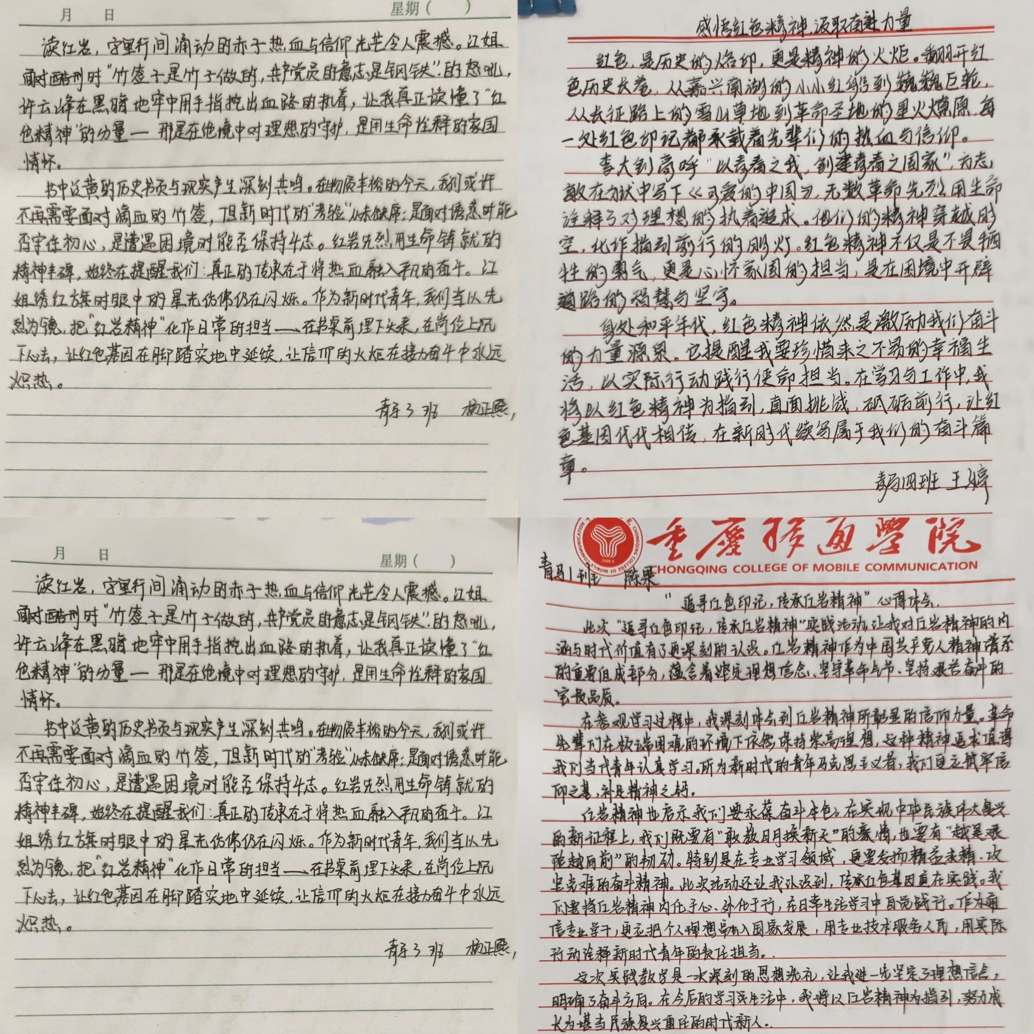 在实践创作环节,学员围绕红岩精神开展多维度艺术诠释。手抄报创作区汇集了32组融合现代设计理念的红色作品,《红梅赞》《黎明前的星火》等作品通过版画、水彩等艺术形式再现红岩记忆;在心得撰写区,学员结合专业特色展开深度思考,撰写的《红岩精神对5G时代青年使命的启示》等文章,实现了红色基因与时代精神的创新性结合。这种“解构-重构”的创作过程,既深化了学员对红岩精神的理解,也探索了革命文化传承的新范式。