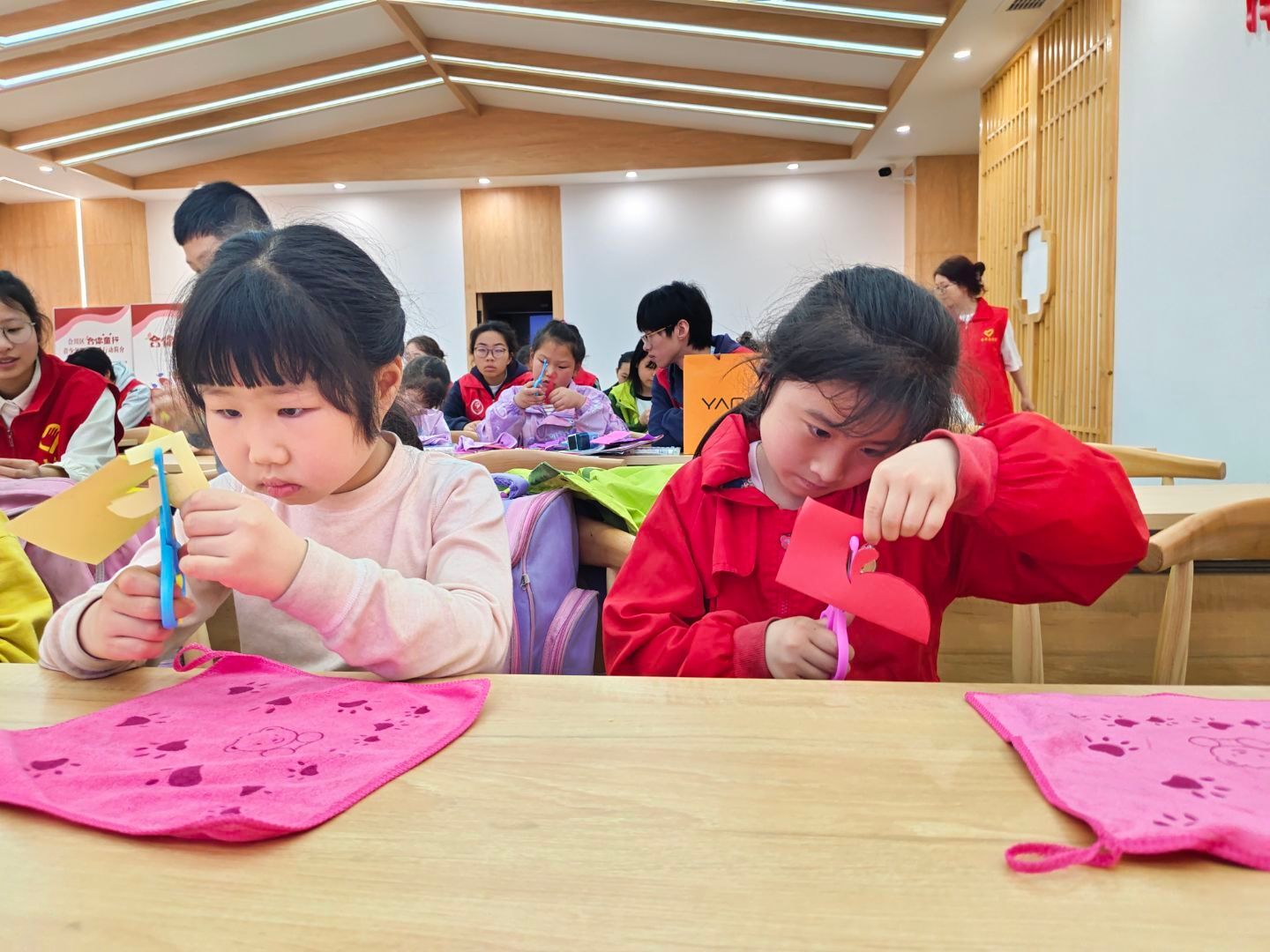 活动伊始,社区负责人毛艺首先以生动易懂的语言向小朋友们介绍了剪纸艺术的历史渊源和文化意义,并通过图片和视频展示了传统剪纸的精美图案。随后,志愿者们分发彩纸、剪刀等工具,手把手指导小朋友们学习折叠、描画、裁剪等基础技巧。