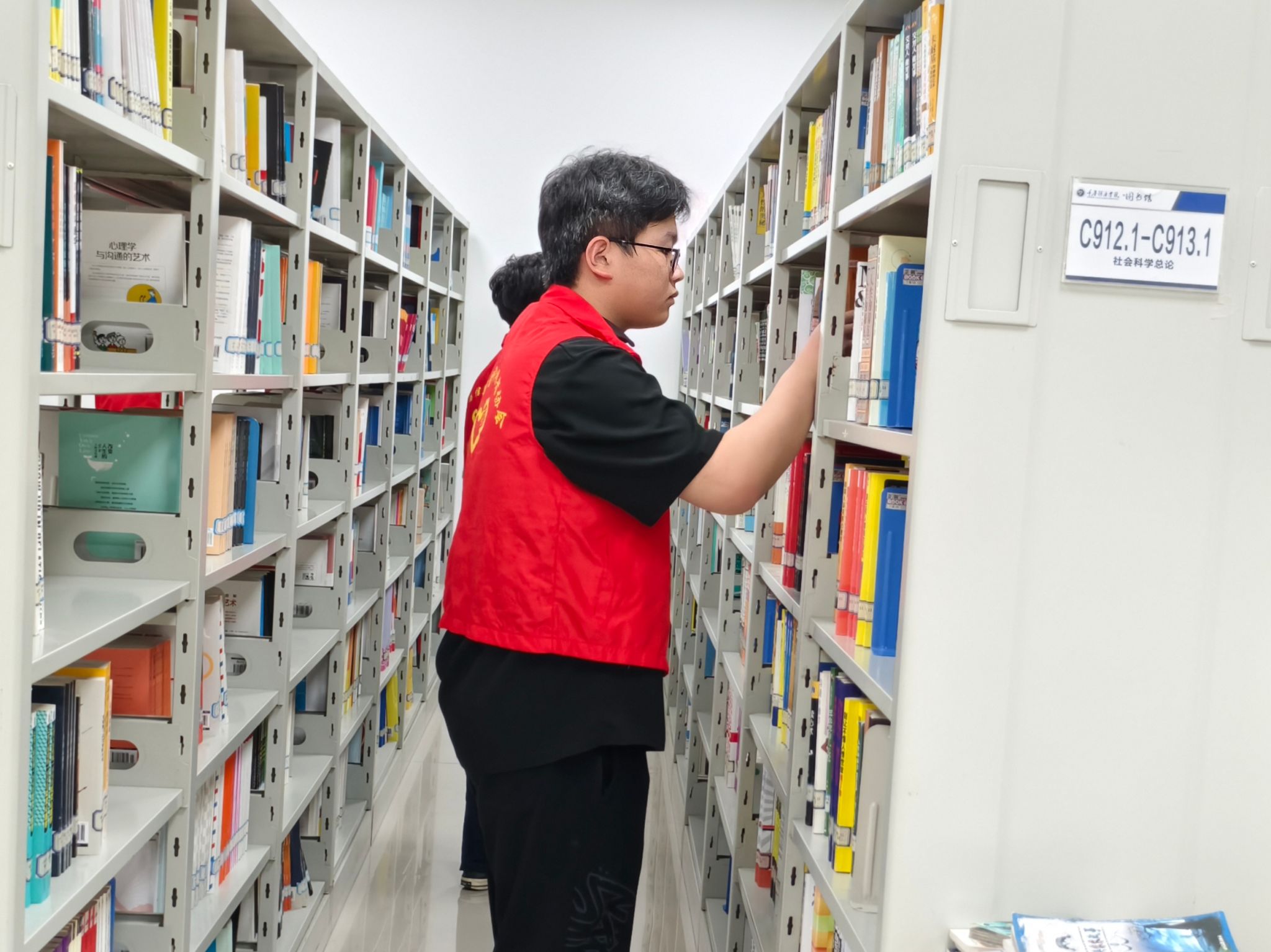 图书馆藏书丰富,规模庞大,在日常借阅后,书籍错放现象时有发生。志愿者们凭借着第一期积累的经验,更加熟练地排查。他们逐排逐列仔细查看,不放过任何一本“迷路”的书。发现错放的书籍,便依据分类索引,将书籍准确归位,让书架始终保持整齐有序,方便师生查找借阅。