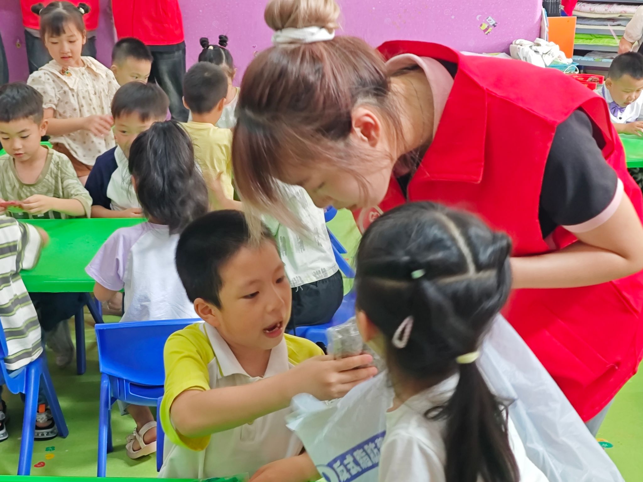 活动伊始,为迅速拉近与小朋友们的距离,志愿者拿出提前准备好的香囊,一下子就吸引了小朋友们的目光。紧接着,志愿者们亲切地询问小朋友们是否知道端午节,小朋友们纷纷举手,用充满童趣的语言分享自己对端午节的零星认知。随后,志愿者们化身“故事小能手”,生动地讲述屈原的故事,从屈原的爱国情怀,到他投江的悲壮,小朋友们听得全神贯注,一双双大眼睛里满是好奇与感动。在讲述过程中,志愿者们还详细介绍了端午节吃粽子、赛龙舟、挂艾草、佩戴香囊等传统习俗,让小朋友们对端午节有了更全面、更深入的认识。