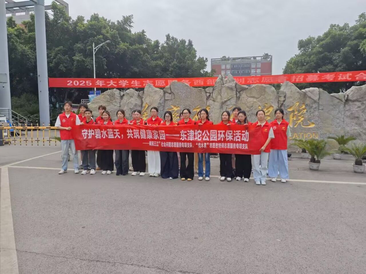 为响应“绿水青山就是金山银山”理念,2025年5月23日14:00,通信与信息工程学院“伐木累”志愿服务支队联合花果基础班50余名志愿者,于学校附近公园开展“携手净滩护江河·青春志愿筑文明”环保行动。志愿者们分组协作,以实际行动守护水域生态,传递绿色生活理念。