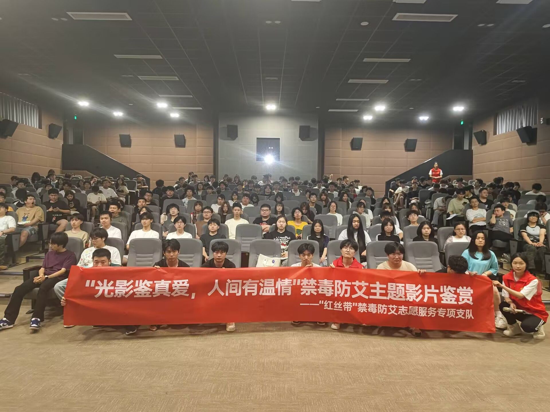五月,暮春的余韵尚未散尽,初夏的热烈悄然到来。移通校园内,朝气蓬勃。为了提高在校学生的艾滋病防范意识,加强校风建设。2025年5月23日,“红丝带”禁毒防艾志愿服务专项支队在六度空间电影放映厅进行了由郭富城演出的电影《最爱》放映活动。共吸引了全校270位同学观看,而放映时同学们专注的目光,也成功的诠释了广范围,高质量的影片鉴赏效果。