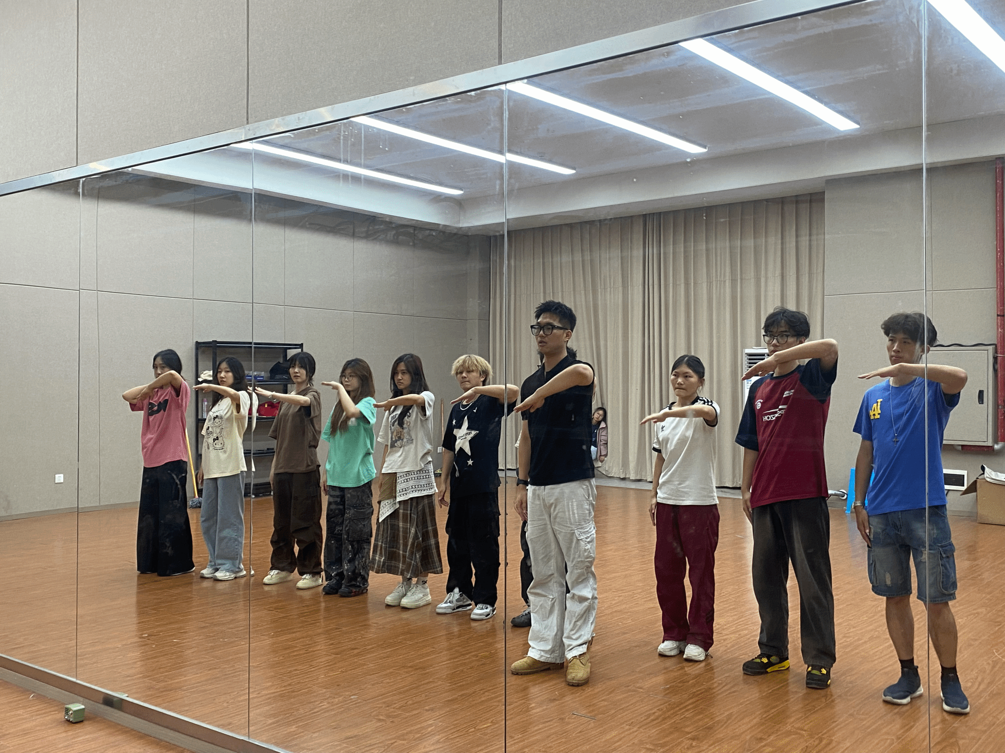 这份荣誉的背后,是无数日夜的艰辛付出。在比赛前一个月,大家几乎每晚都排练至凌晨。训练室里,同学们展现出强大的凝聚力,面对舞蹈基础薄弱的队员,他们互帮互助,利用休息时间加练;有的队员主动为同伴录制视频,帮助其发现动作问题。虽然有时淤青悄然爬上身体,倦意写满脸庞,但是没有一人喊累退缩。