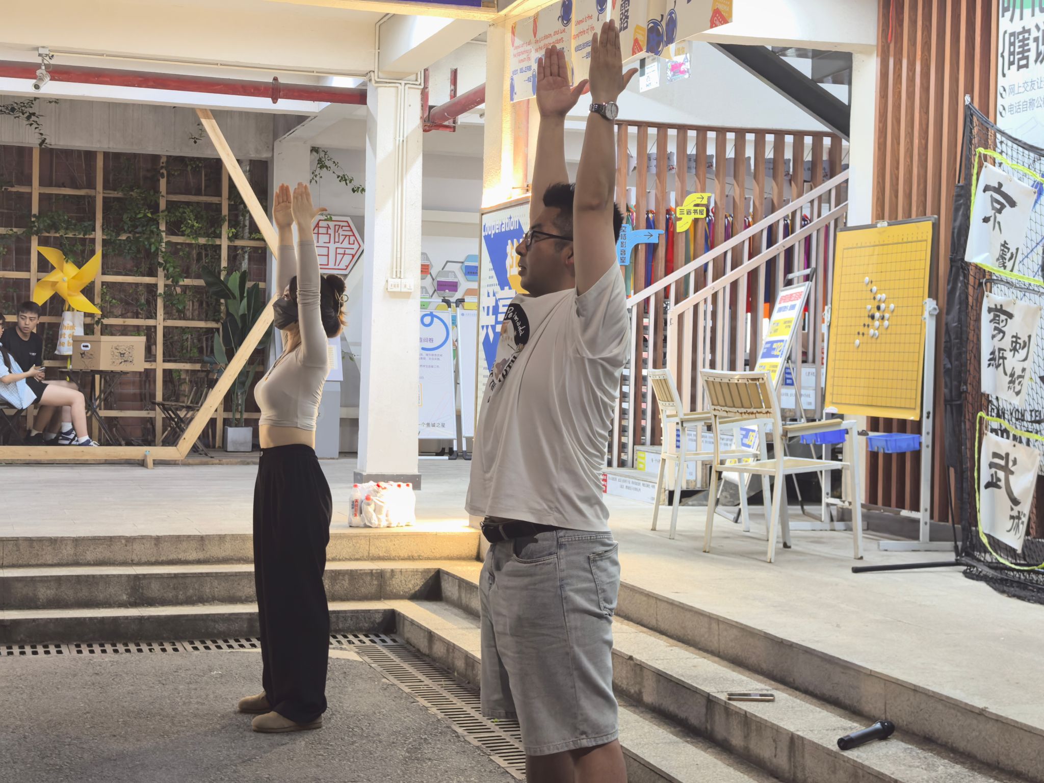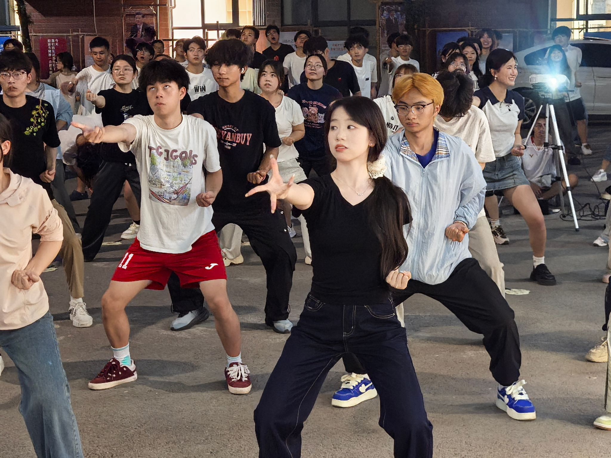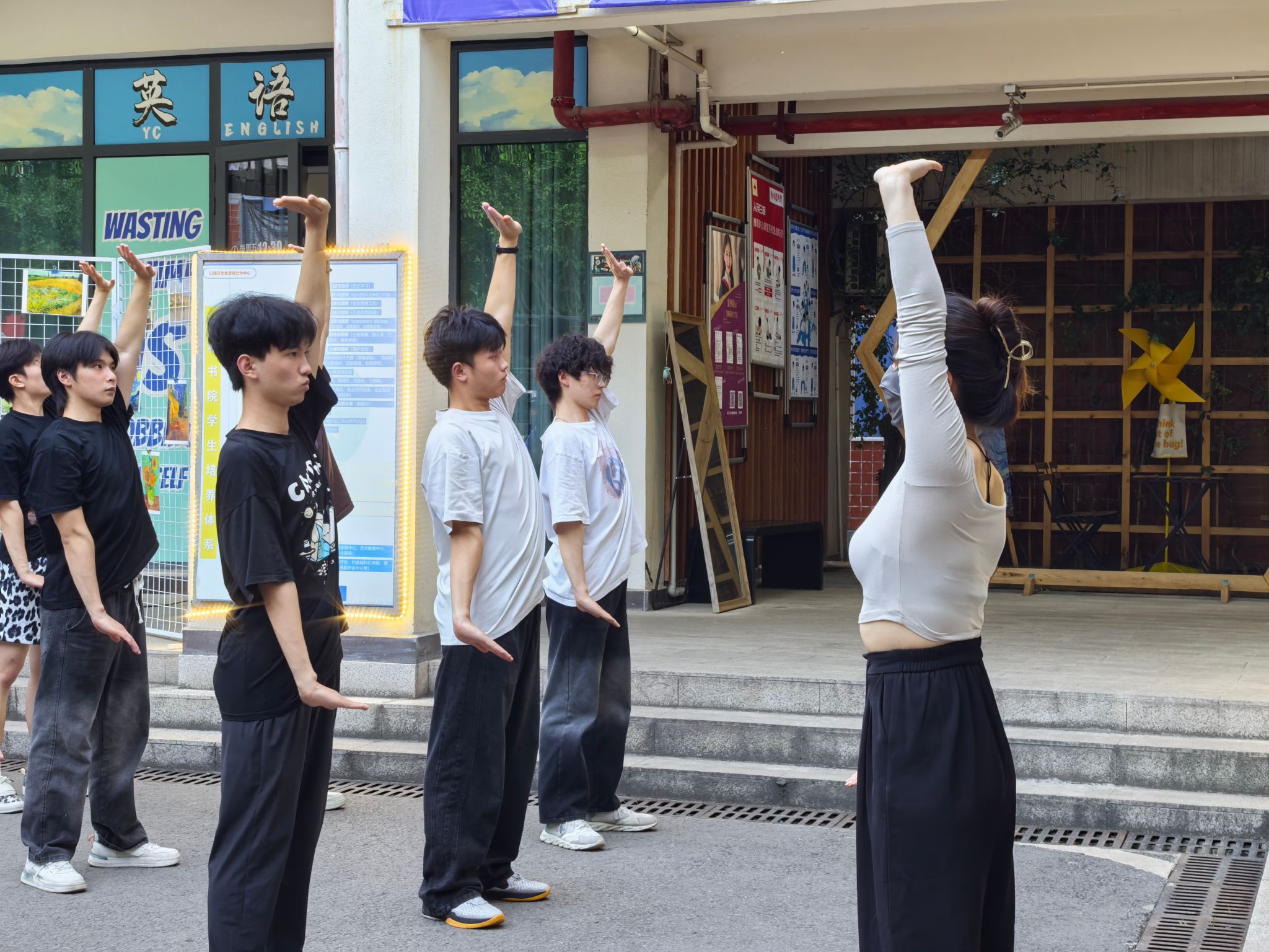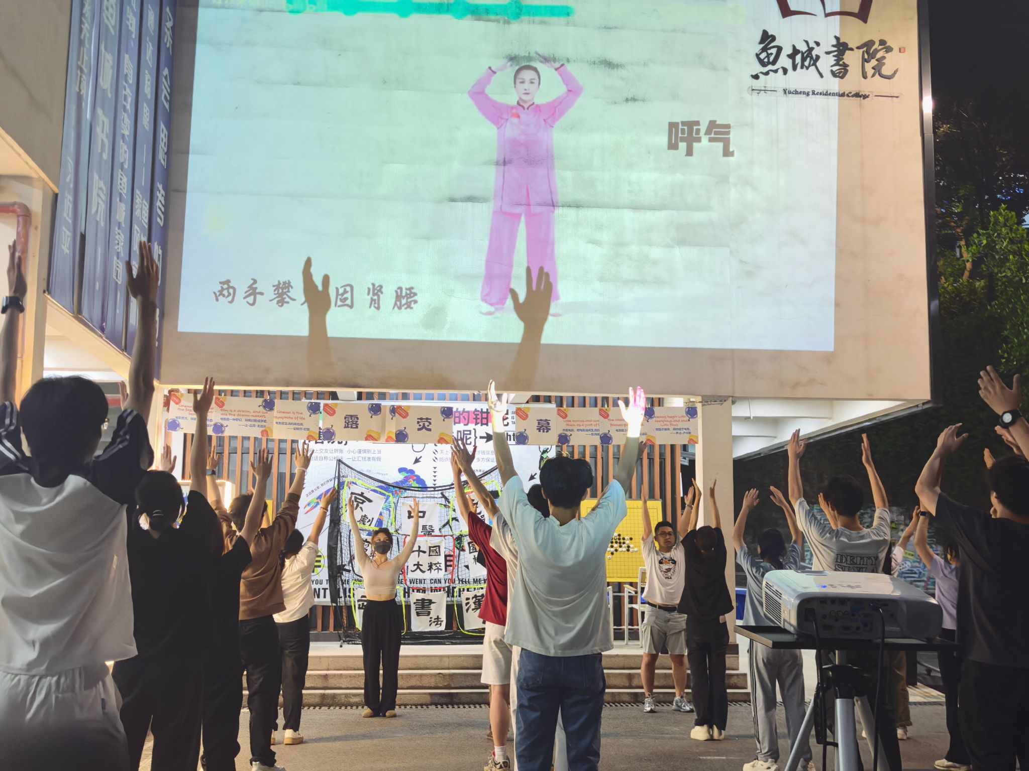 训练初期,队员们对 “两手托天理三焦”“左右开弓似射雕” 等招式的发力方式和呼吸节奏掌握不足,动作常显僵硬。我们邀请鱼城书院的老师进行动作指导。第一次合练时,队伍的连贯性差,单是的转手角度就反复纠正。傍晚的训练场不仅是技能提升的阵地,更是团队凝聚力的熔炉。老师们的精心指导,成员们互相纠错,互帮互助。“那些在夕阳下挥汗的傍晚,让我们真正懂得了‘台上一分钟,台下十年功’的含义。”