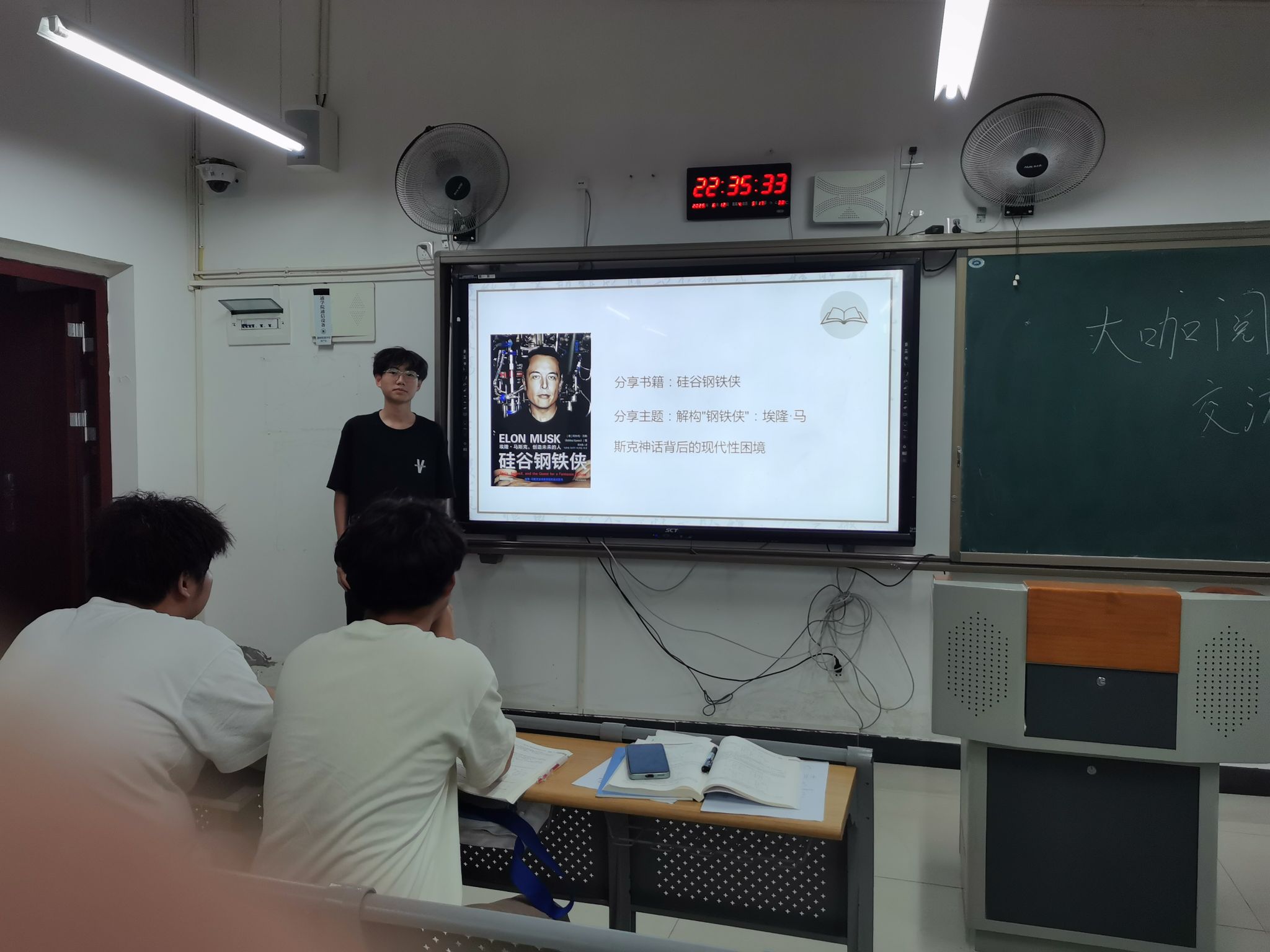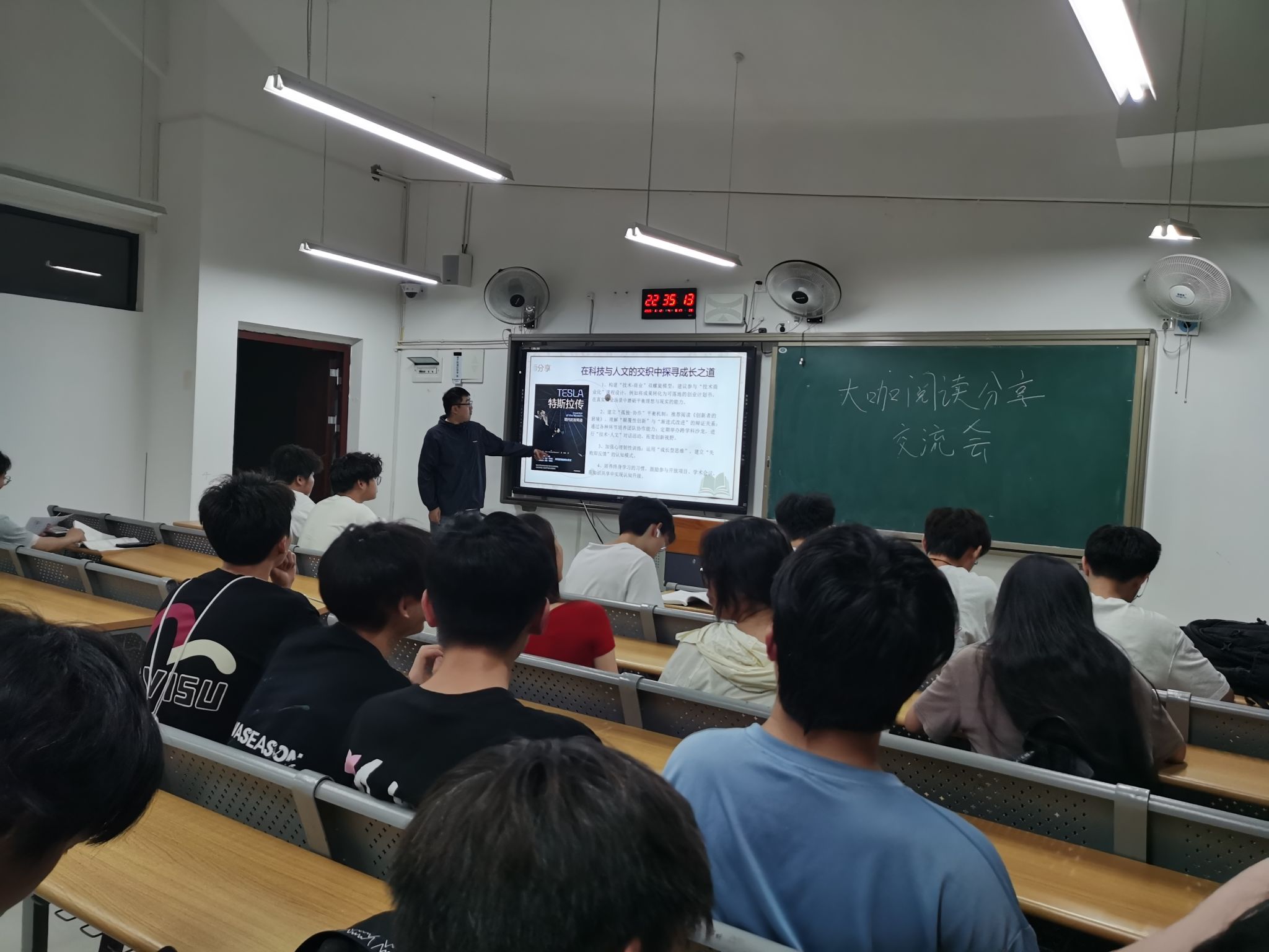 同学以《硅谷钢铁侠》为蓝本,带来“解构‘钢铁侠’:埃隆・马斯克神话背后的现代性困境”主题分享。她通过书中记载的SpaceX与特斯拉创业细节,剖析马斯克“用第一性原理思考”的思维范式,同时指出其“火星殖民计划”背后隐藏的技术乐观主义与现实伦理的冲突。“当我们崇拜商业领袖的颠覆式创新时,更应思考科技进步与人文关怀的平衡。”其观点引发在场同学共鸣。