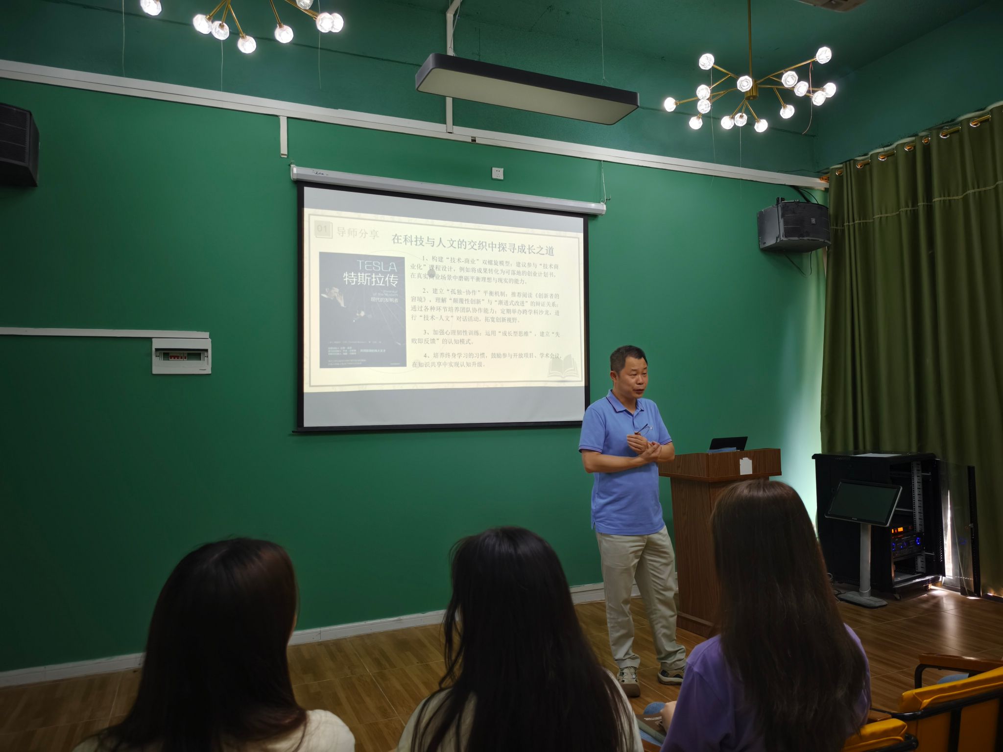 活动中,高大果老师率先分享《特斯拉传:现代的发明者》阅读感悟,以发明家尼古拉·特斯拉的传奇人生与科创贡献为脉络,解析其在电力、无线电等领域突破常规的思维模式,从交流电系统等发明对现代社会的深远影响,引导同学们思考电子信息领域传承创新精神、探索跨界融合的逻辑,强调“特斯拉以技术革新回应人类发展需求,与电子信息工程服务社会的学科使命深度呼应”。
