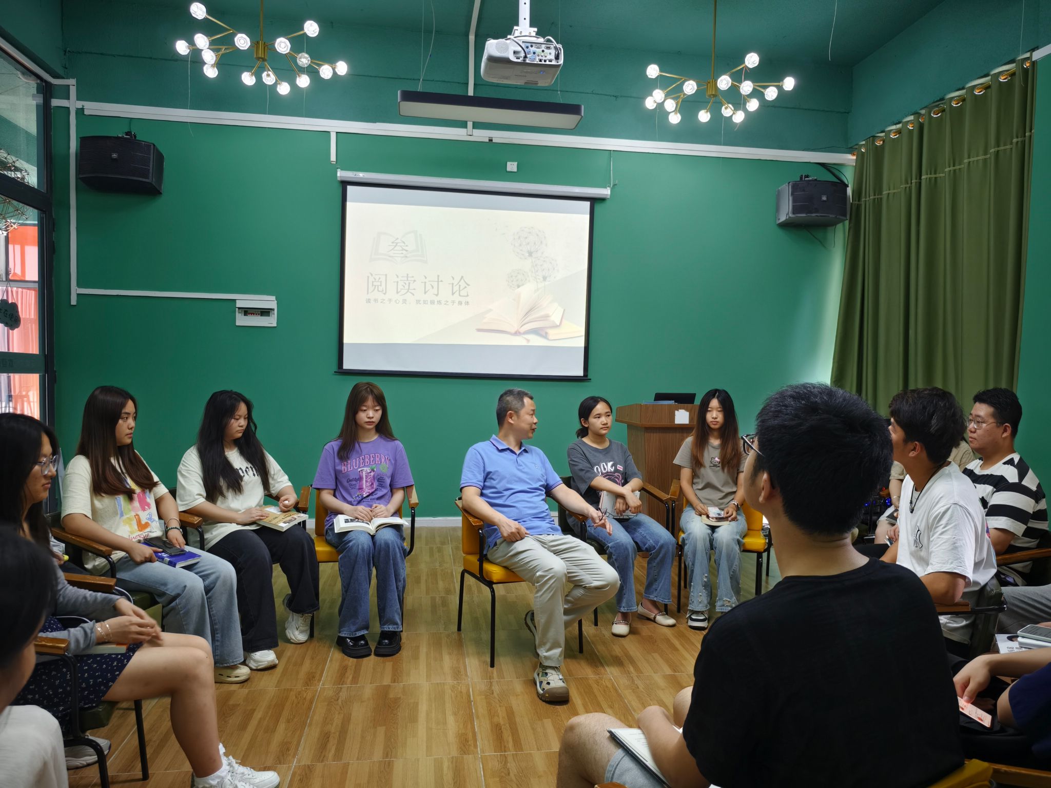 为了激发同学们的阅读兴趣,促进师生共读经典、深度交流思想,2022级电子信息工程志向1班全体同学与学业导师高大果于2025年6月9日在花果书院多功能活动室内共同开启“大咖阅读”主题分享会,围绕科技与商业领袖传记展开深度交流。