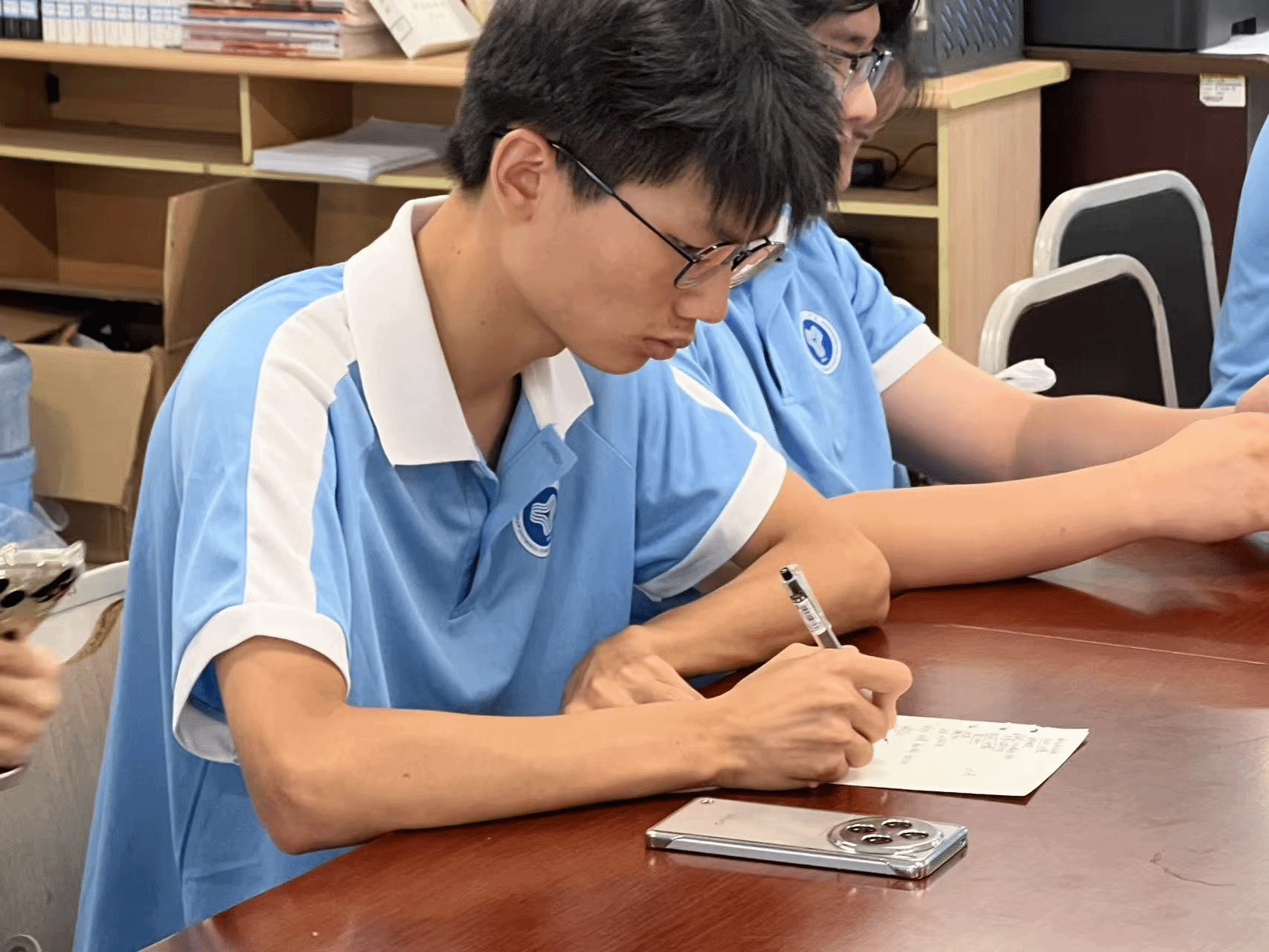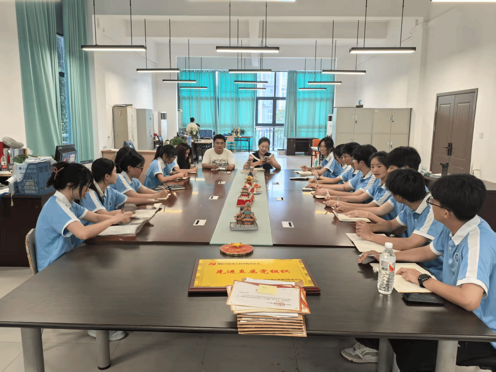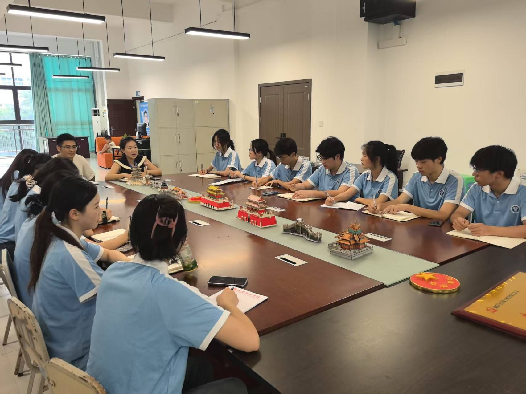 7月2日,在指导老师李林燕和张泽杰的带领下,我们一头扎进了紧张又有趣的筹备工作中。第二实验楼三楼的会议室里,讨论声、笑声此起彼伏。李林燕老师反复叮嘱“以礼立行”的重要性,“出去咱们代表的可不是自己,要时刻元气满满,记得常怀感恩之心哟!”这番话让我们明白,志愿服务不只是干活,更要展现新时代青年文明素养的大舞台。 张泽杰老师则秒变“安全卫士”,一句句“离队必报备、行动须结伴”,让“安全第一”牢牢刻在了我们每个人的心里。团队成员们围坐在一起,你一言我一语,各种奇思妙想疯狂碰撞。
