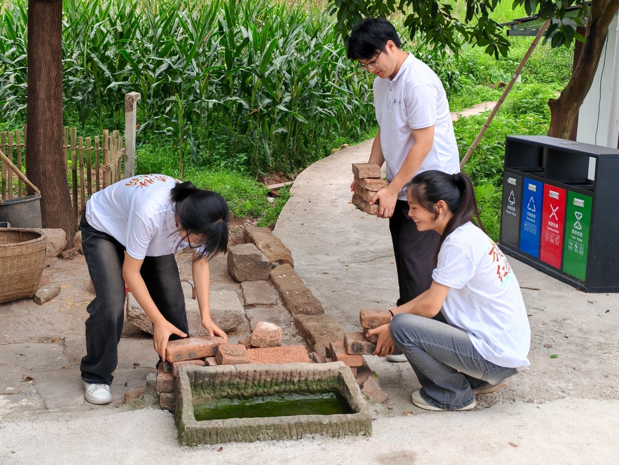 上午八点半,沙堡村党支部书记郑刚同志带着自制的手绘地图匆匆赶来:“咱们村正在创建巴蜀美丽庭院示范村,目前最缺的就是人手帮忙规整庭院。”了解到村里的实际需求后,同学们迅速行动。成员员骨干带头分成五个小组,有的拿着扫帚清理村民院落的杂草,有的用抹布仔细擦拭庭院围栏,还有的帮助独居老人搬运杂物。烈日下,汗水浸透了每个人的衣衫,但看到原本杂乱的庭院逐渐变得整洁美观,听着村民们一声声真诚的“谢谢”,大家都觉得所有的辛苦都化作了满满的成就感。