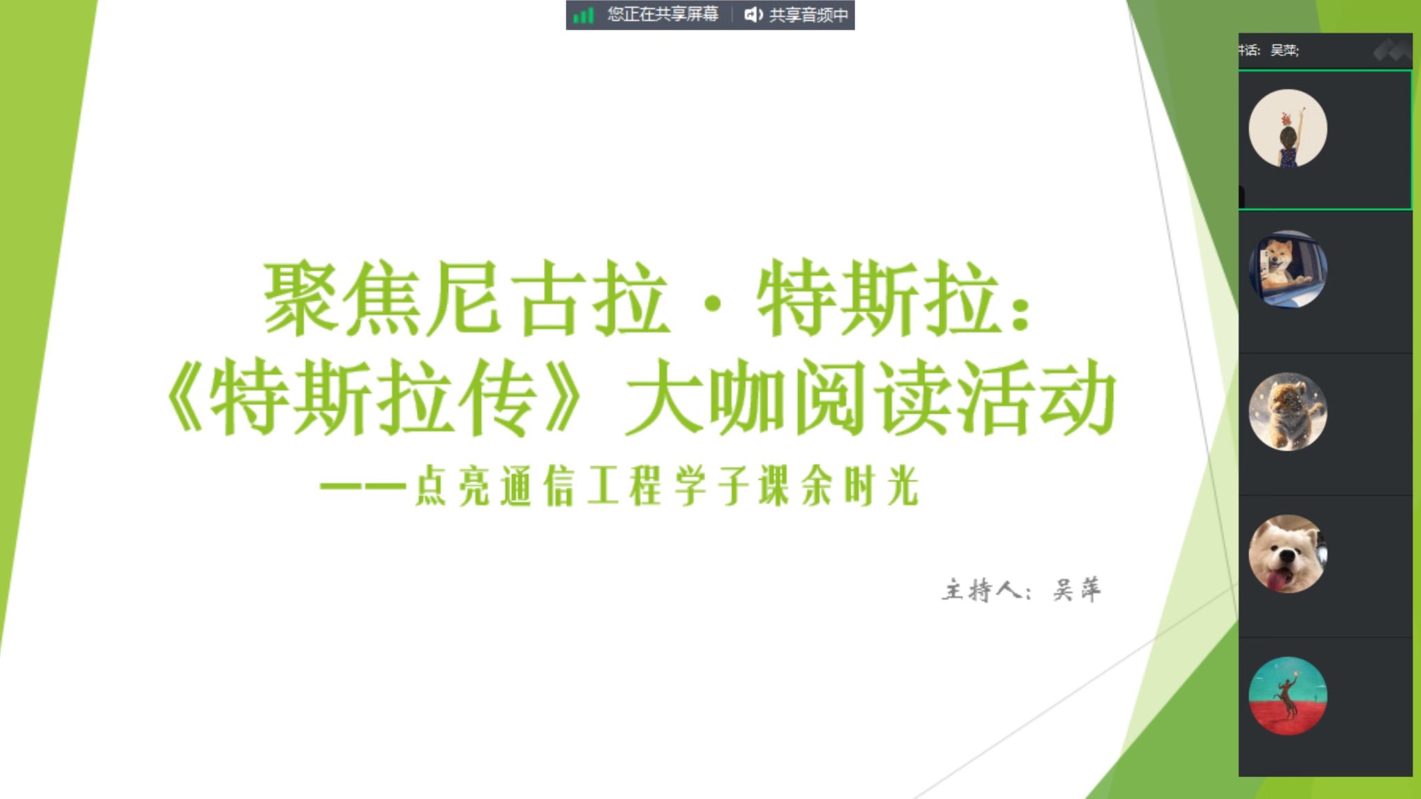 2025年8月12日上午9:30,2022级通信工程志向3班的37名同学,在线参与了“走进尼古拉・特斯拉——一位‘古怪’的伟人”《特斯拉传》大咖阅读活动。活动旨在让学生了解特斯拉的传奇人生,厘清他与马斯克“特斯拉”品牌的关联,丰富课余生活。