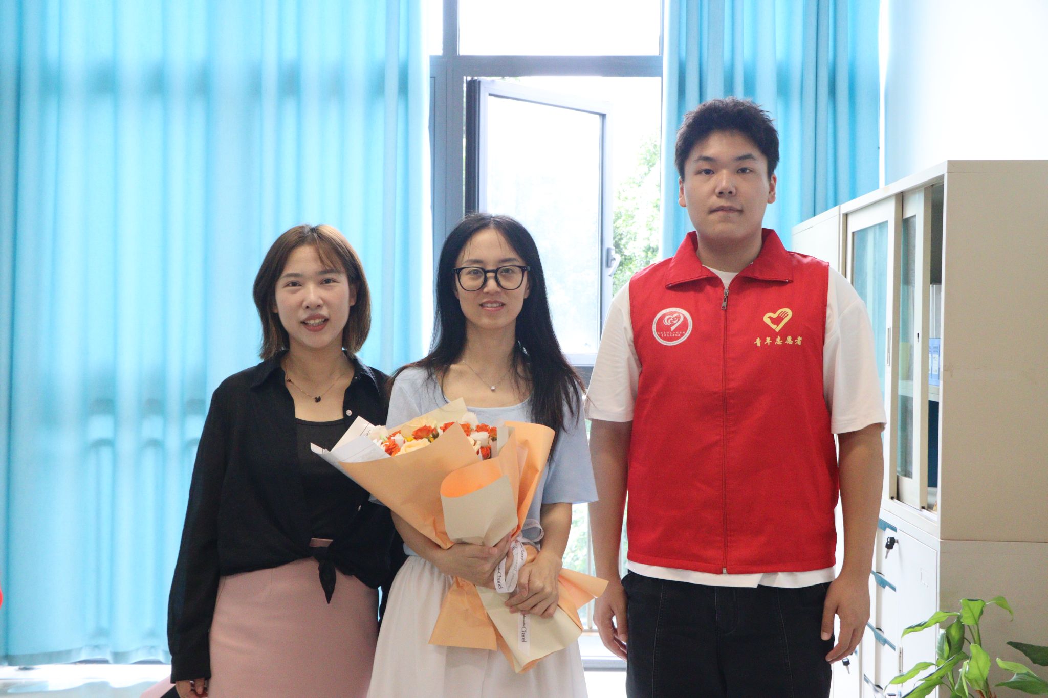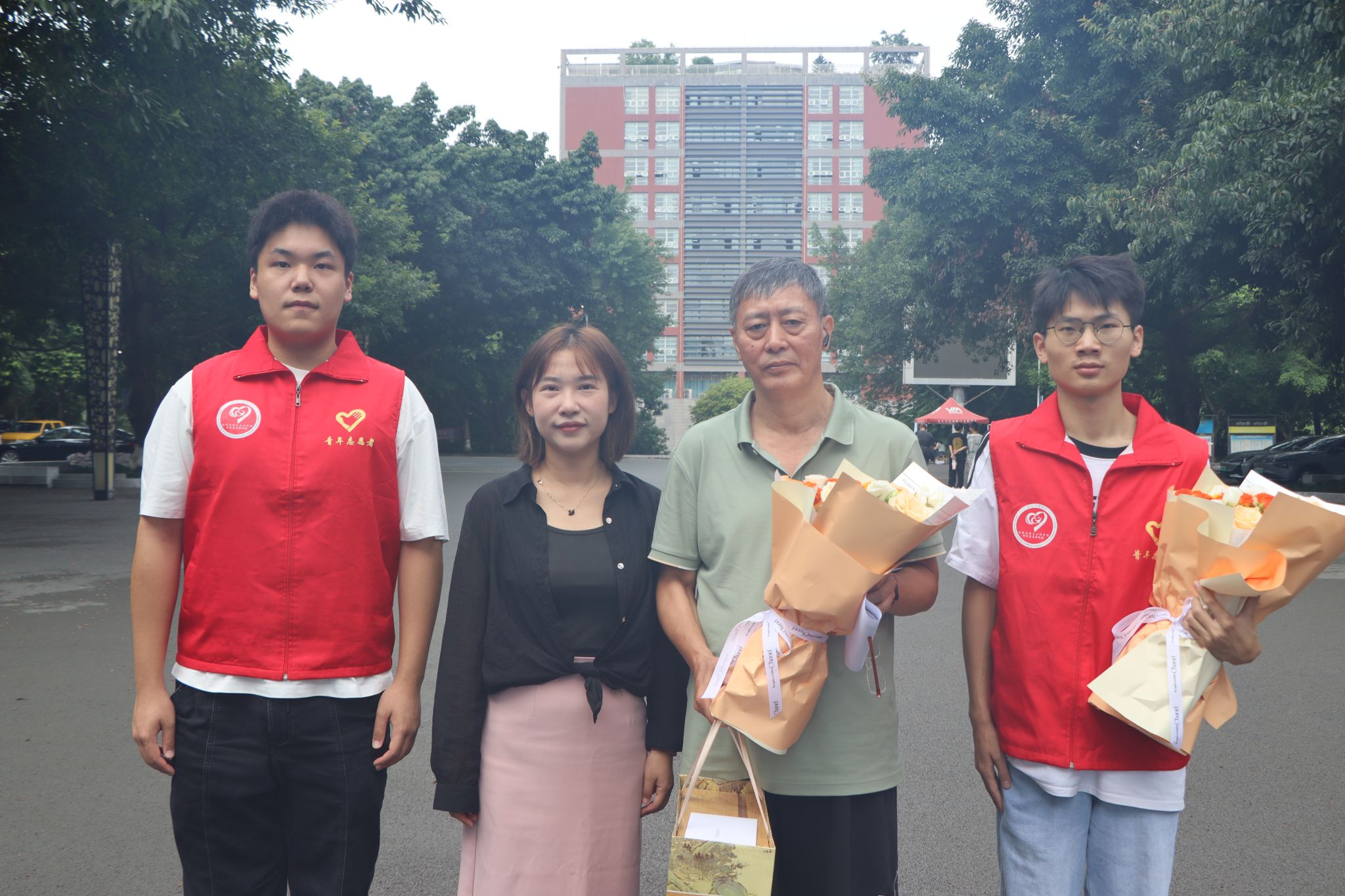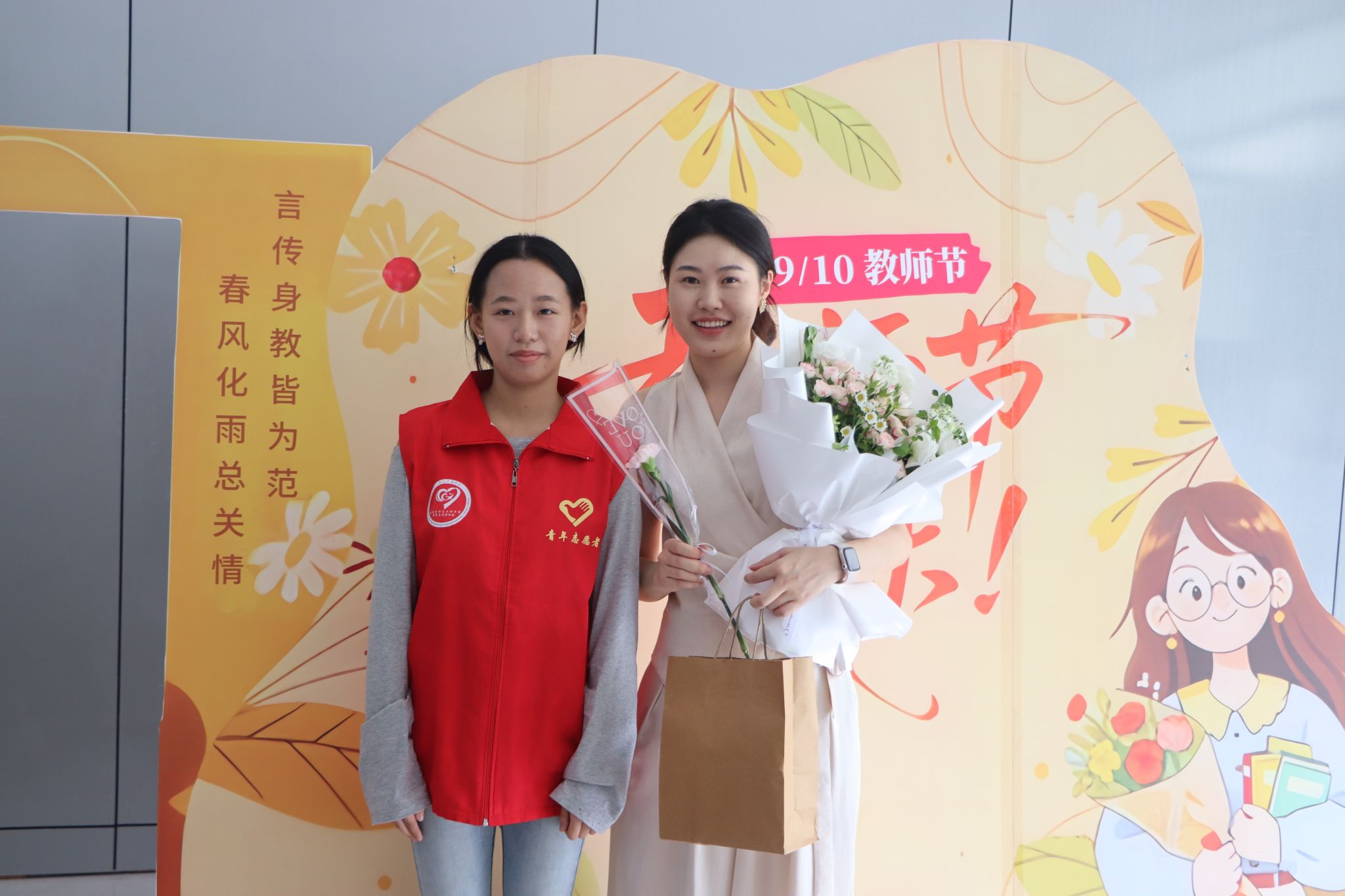 活动在欢快的氛围中徐徐展开,空气中弥漫着暖意融融的温情。志愿者代表向全体教师致以节日的诚挚慰问和美好祝福,感谢他们以渊博的学识和无私的奉献,滋养着一代代学子的成长,为学院发展注入不竭动力.随后,志愿者们依次为老师们献上鲜花,一束束芬芳饱含着学生对师恩的深深感激与崇高敬意。