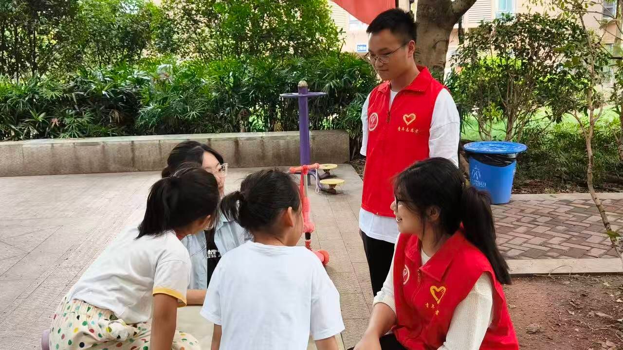 随后在9月20日,"太阳花亲情驿站"支队在花果山社区系统开展活动场所安全评估,并与社区工作人员就课后托管服务内容进行专项研讨。基于现场调研结果,支队指导老师提出增设科普实验、趣味书法等素质拓展课程的建议,着力优化课后服务供给质量。