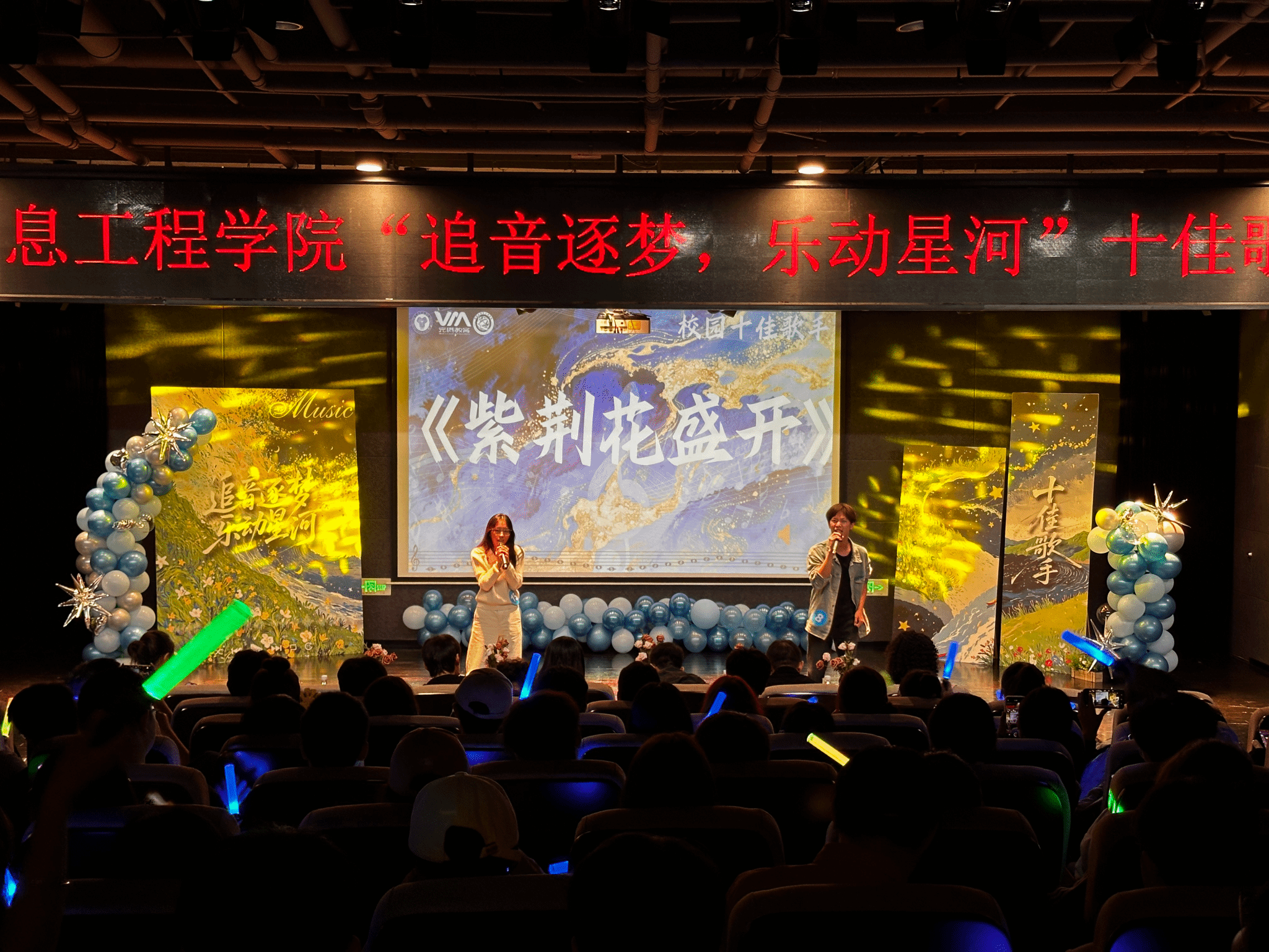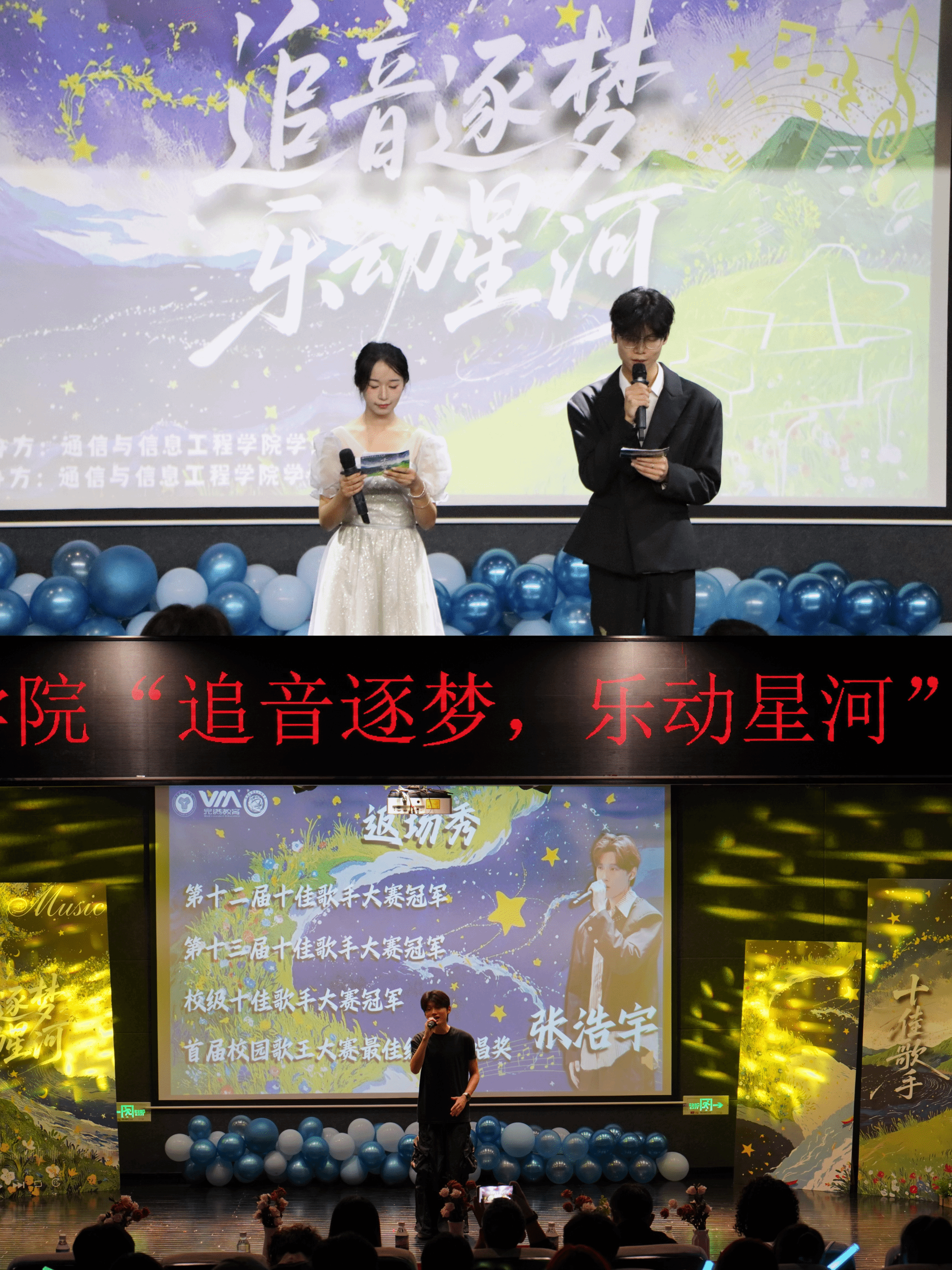 青春如歌,声动星河。2025年10月15日晚,通信与信息工程学院“追音逐梦,乐动星河”十佳歌手决赛在六度空间黑匣子剧场圆满落幕。16位选手历经层层选拔,在此展开精彩对弈,用歌声编织青春乐章,让旋律传递追梦热忱。