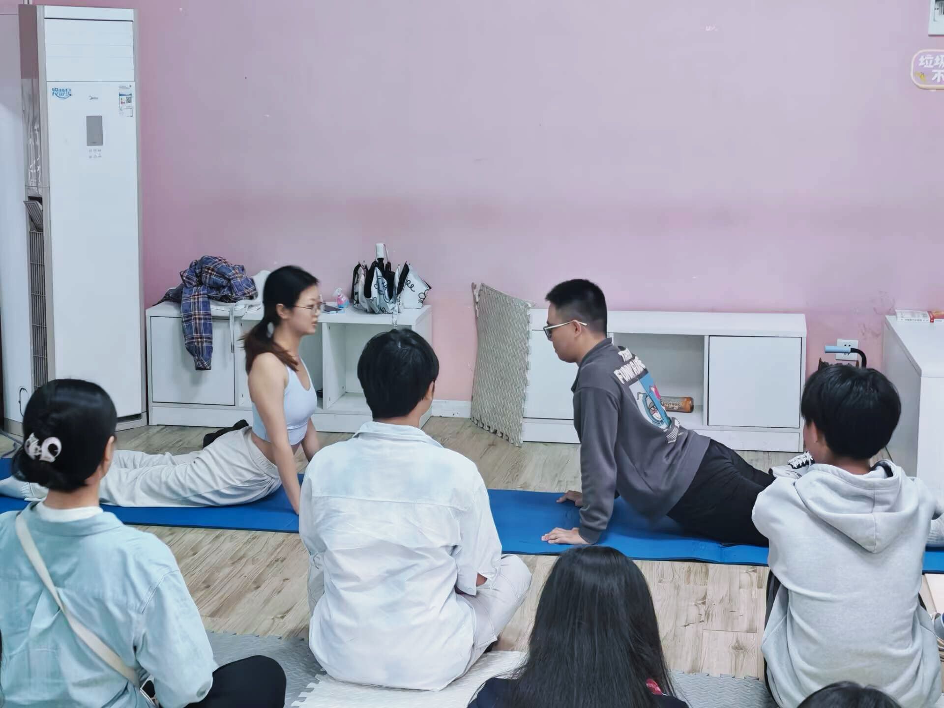 活动伊始,瑜伽校队成员李琪琪同学作为“减压导师”,为大家讲解瑜伽放松的基础知识,并带领现场互动实践,引导同学们学习通过瑜伽科学释放压力、缓解身心疲劳的方法。