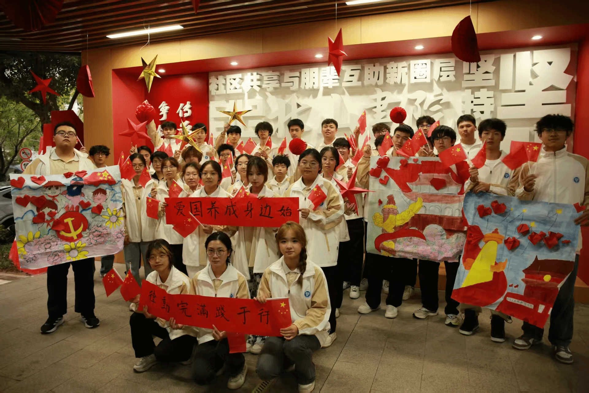 全体师生用笔在剪纸上写下自己对祖国的美好祝愿,通过笔尖传递、在文字中扎根!直播间的家长观看后深受感动,也助力全体同学把胸中的家国热情转化为日常学习的动力、成长路上的担当,用实际行动践行承诺,成长为可担祖国发展重任的新时代青年!